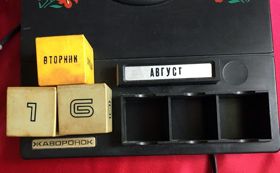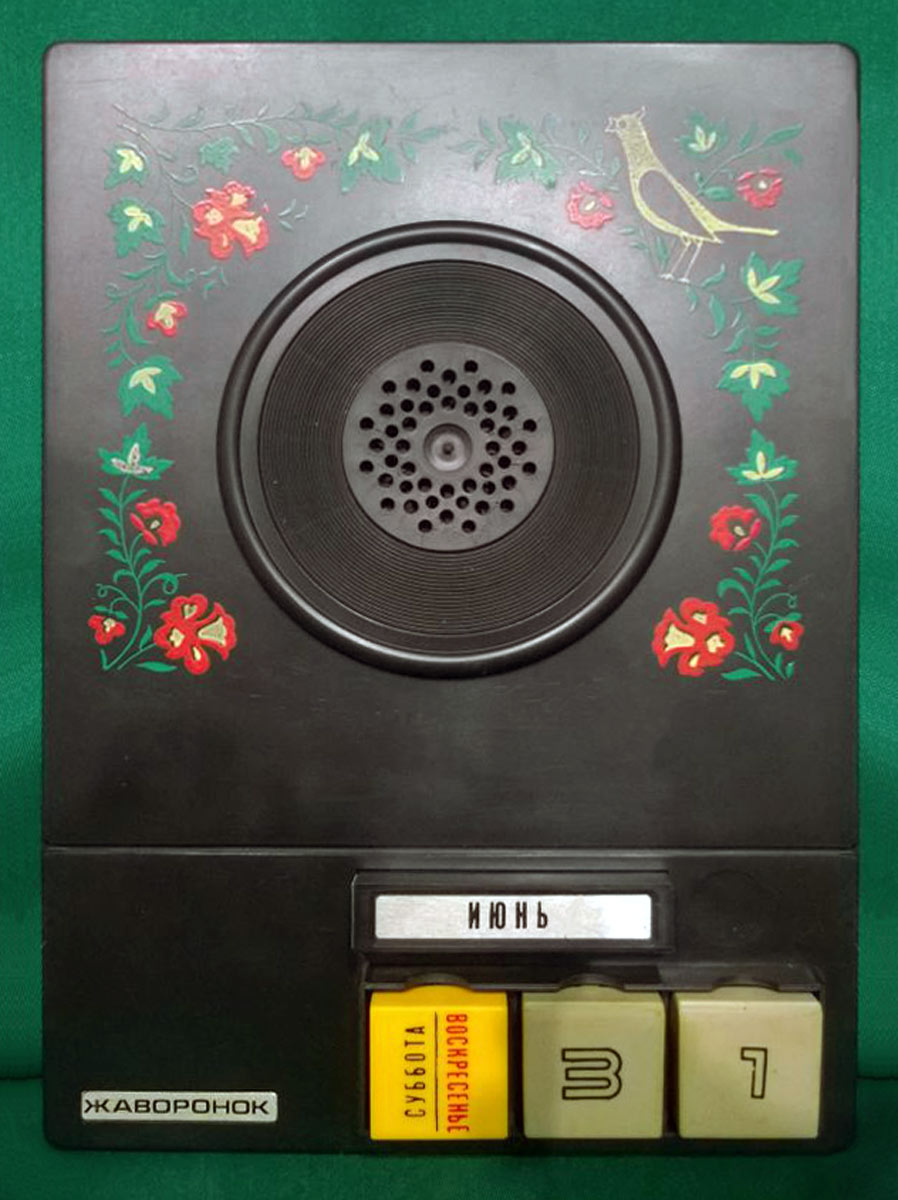 Сувенирный абонентский громкоговоритель "Жаворонок" с наборным календарём выпускался предположительно с 1996 года Днепропетровским радиозаводом.