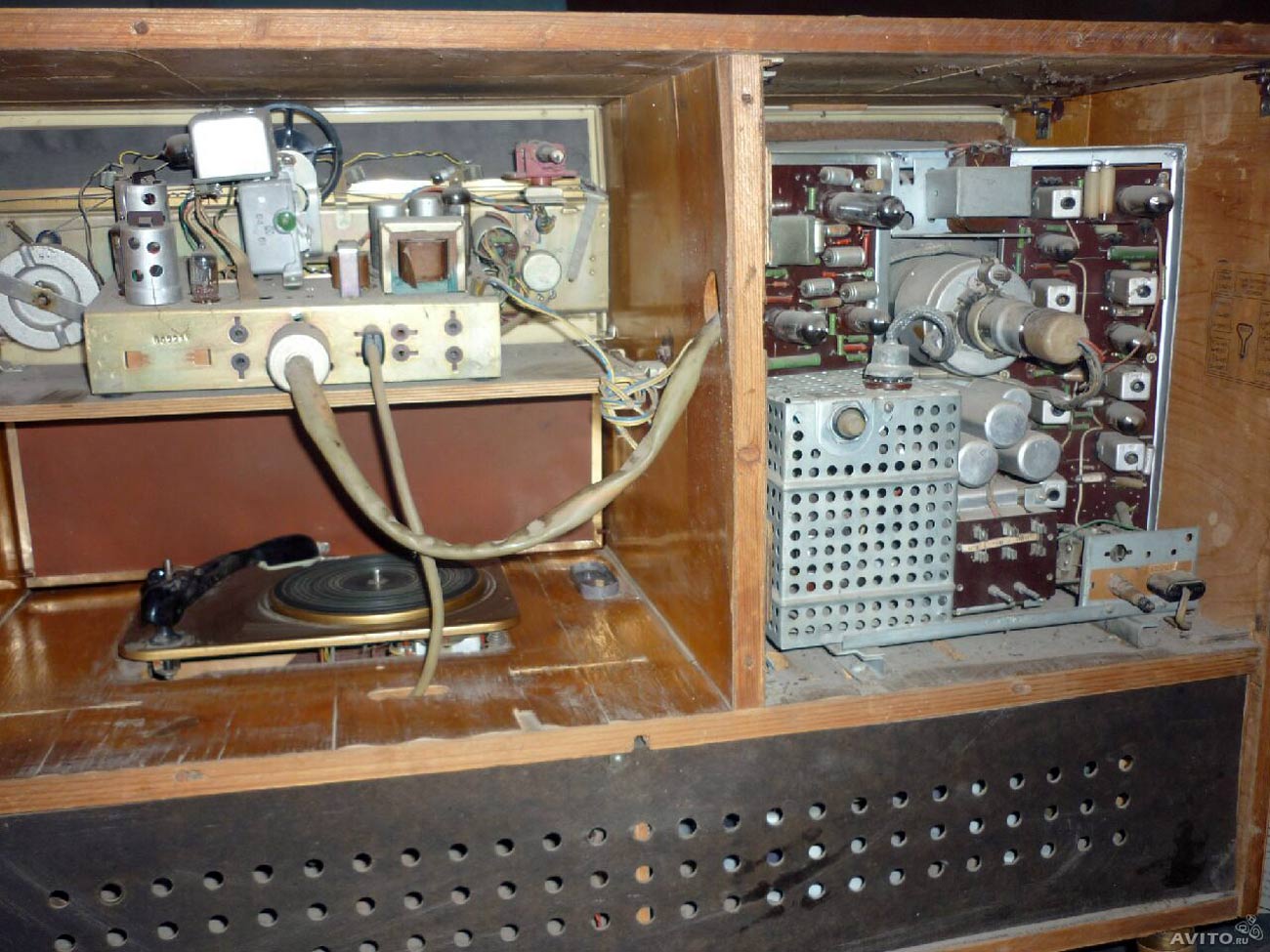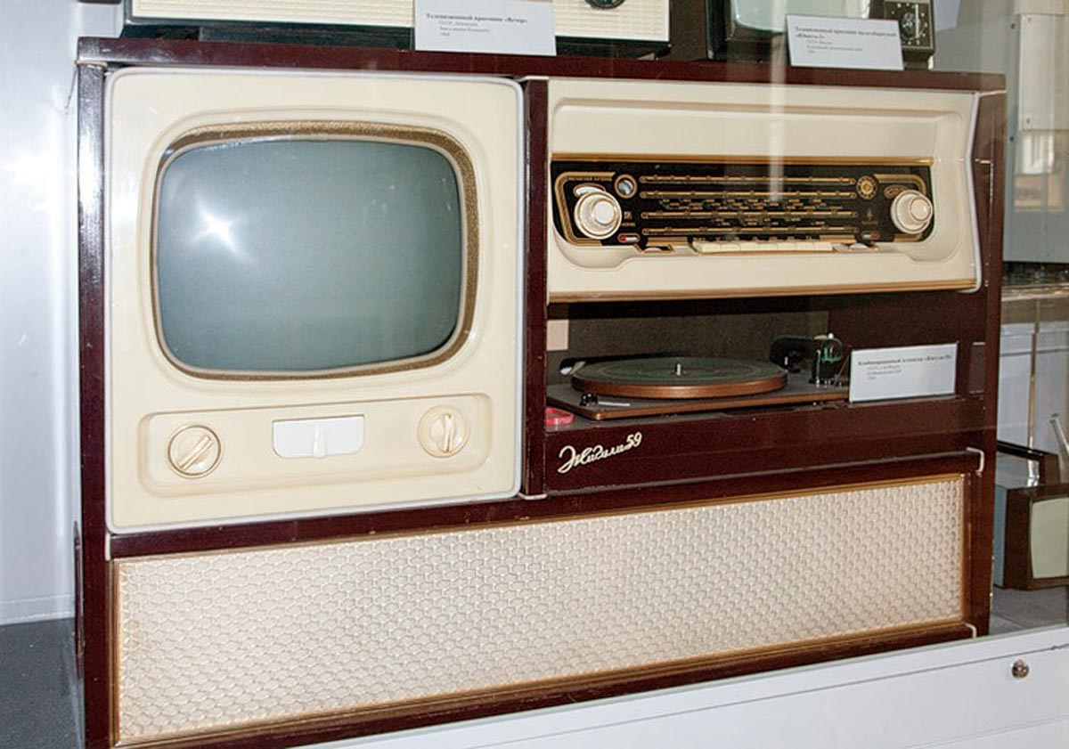 Телерадиола *Жигули-59* с 1959 года выпускалась на Куйбышевском заводе *Экран*. Представляет coбой 23-х ламповую напольную комбинированную установку для приёма в любом из 5 каналов МВ диапазона, радиостанций в диапазонах ДВ, СВ, КВ, УКВ-ЧМ и проигрывания обычных и долгоиграющих пластинок. Телерадиола смонтирована на базе телевизора **Старт-2** и радиолы **Жигули**, с упрощённой схемой и конструкцией без тракта ЧМ. При этом усилитель НЧ использован от радиоприёмника. АС состоит из 4-х громкоговорителей: 2-х широкополосных 5ГД-14, расположенных на передней панели и 2 высокочастотных 1ГД-9, расположенных по бокам футляра. Коммутация позволяет включать телевизор, радиоприёмник и проигрыватель независимо. Питание телерадиолы осуществляется общим блоком питания. Диапазоны волн: ДВ, СВ стандартные. КВ-1 24,8...33,9 м. КВ-2 40...76 м. ЧМ диапазон 64,5...73 мггц для удобства настройки разбит на три поддиапазона. Чувствительность телевизора 200 мкВ, ЧМ - 100 мкВ. Чувствительность АМ - 200 мкВ. Полоса воспроизводимых частот ТВ и ЧМ - 80..10000 Гц, АМ - 80...4000 Гц, ЭПУ - 80...7000 Гц. Размер изображения 220х290 мм. Номинальная выходная мощность 2 Вт. Потребляемая мощность при работе телевизора 160, приёмника 55, ЭПУ - 70 Вт. Габариты установки 945х415х645 мм. Её масса 65 кг. С 1960 года завод выпускал улучшенную телерадиолу *Жигули*, обеспечивающую приём телевидения на любом из 12 каналов, радиостанций в диапазоне ДВ, СВ, КВ, УКВ и проигрывание обычных или долгоиграющих пластинок. Телерадиола построена на основе телевизора **Старт-3** и радиолы **Жигули**.