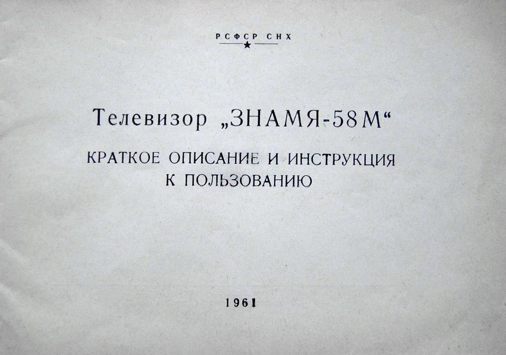 Телевизионный приёмник *Знамя-58* с 1958 года выпускал Ленинградский завод имени Козицкого. Телевизор **Знамя-58** модернизация модели **Знамя**, а выполнен по конструкции телевизора **Весна**. Телевизор имеет ПТК на 12 каналов, 15 радиоламп, 7 диодов и кинескоп 43ЛК2Б. Размеры изображения 340х255 мм. ВЧ тракт выполнен по супергетеродинной одноканальной схеме. ПЧ изображения 34,25, звука 27,75 МГц. Чувствительность модели 200 мкВ, четкость в центре экрана около 500 строк. Полоса воспроизводимых звуковых частот 100...6000 Гц. Звуковое давление от громкоговорителей типа 2ГД3 и 1ГД9 - 4 бар. Потребляемая от сети мощность 130 Вт. Футляр из фанеры, имитирующей ценные породы. Размеры модели 520 х 495 х 475 мм. Масса 28 кг. Телевизор имеет ручку корректора чёткости, гнёзда головных телефонов и выключатель звука. На переднюю панель ТВ выведены 2 сдвоенные ручки управления: левая - регулятор громкости с выключателем и яркости; правая - контрастности и чёткости. Ручки для регулятора тембра, ПТК и гетеродина размещены справа футляра в пластмассовой нише. Вспомогательные ручки выведены на заднюю стенку. В 1961 году телевизор был модернизирован в **Знамя-58М**. По параметрам и внешнему виду он аналогичен базовому телевизору, а его достаточно поздний выпуск обусловлен повышенным спросом. Высокое качество оформления, устойчивая работа, хорошее качество изображения и звук телевизора *Знамя-58* позволили ему в весьма короткий срок завоевать признание потребителей в своей стране, так и за рубежом и получить *Гран-При* на всемирной выставке *Экспо-58*. Радио №4/1965, ст. 30