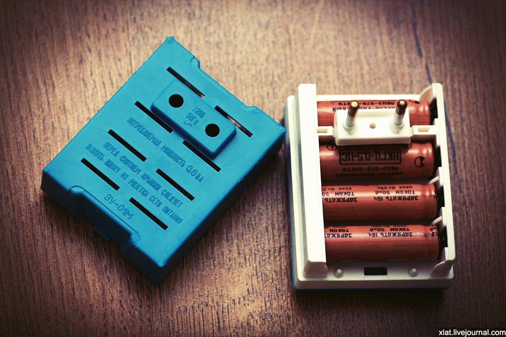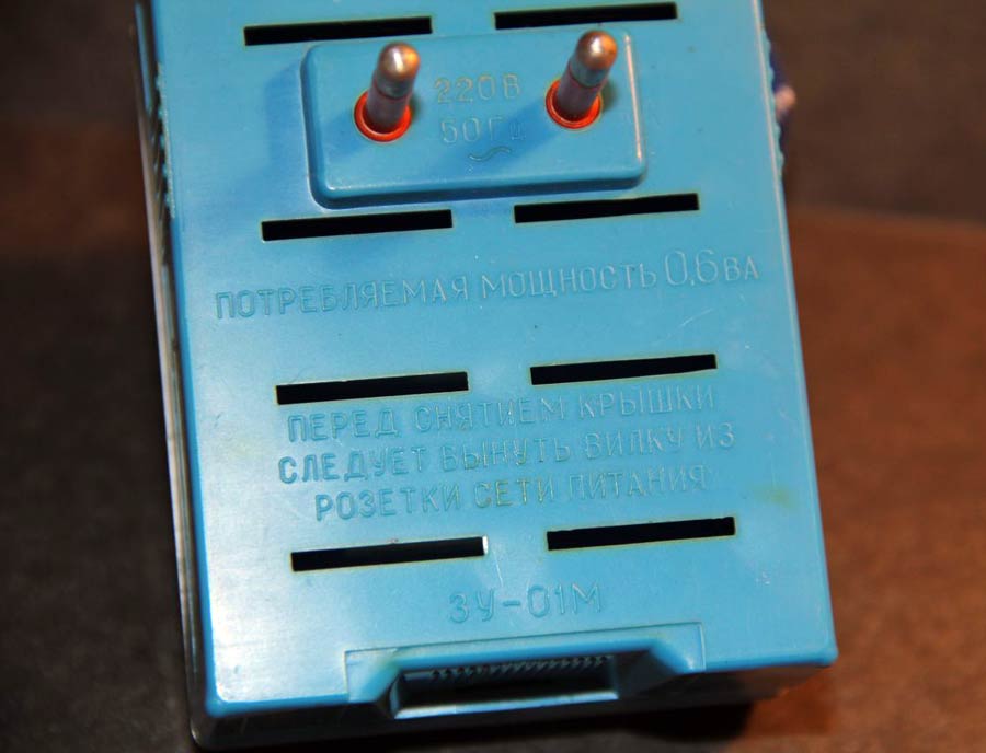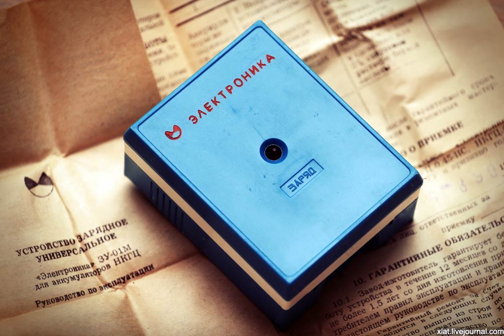 Зарядное устройство *ЗУ-01* (Электроника) выпускалось с 1987 года. ЗУ предназначено для зарядки аккумуляторов НКГЦ-0,45-11 от сети 220 вольт. Аккумуляторы предназначены для питания малогабаритной бытовой радиоаппаратуры. Их номинальная емкость 0,45 А/ч при разрядке током 90 мА до напряжения 1 вольт. Они с успехом заменяют широко распространённые элементы 316. Число заряжаемых аккумуляторов от 1 до 4-х; ток зарядки 45 мА; время зарядки 14 час.; габариты ЗУ - 64х44х80 мм; масса 80 г. Цена 3 рубля 50 копеек. Выпускаемое с 1989 года ЗУ *Электроника ЗУ-01М* кроме розничной цены не отличается от описанного выше ЗУ.