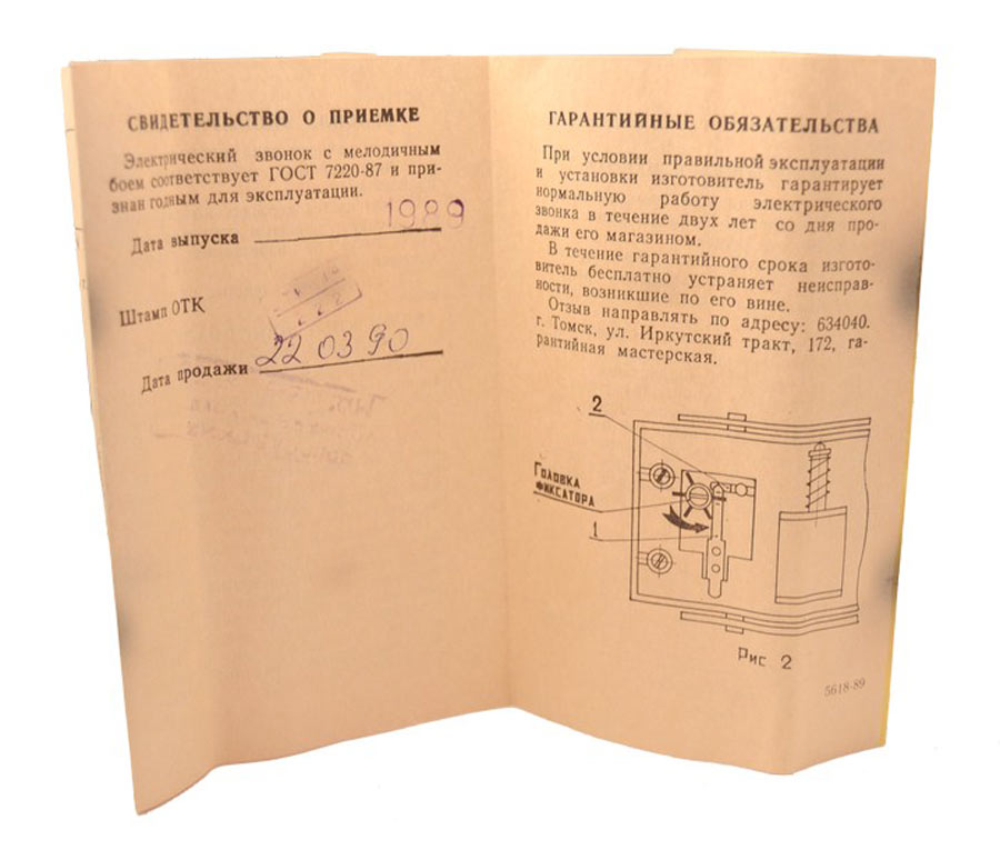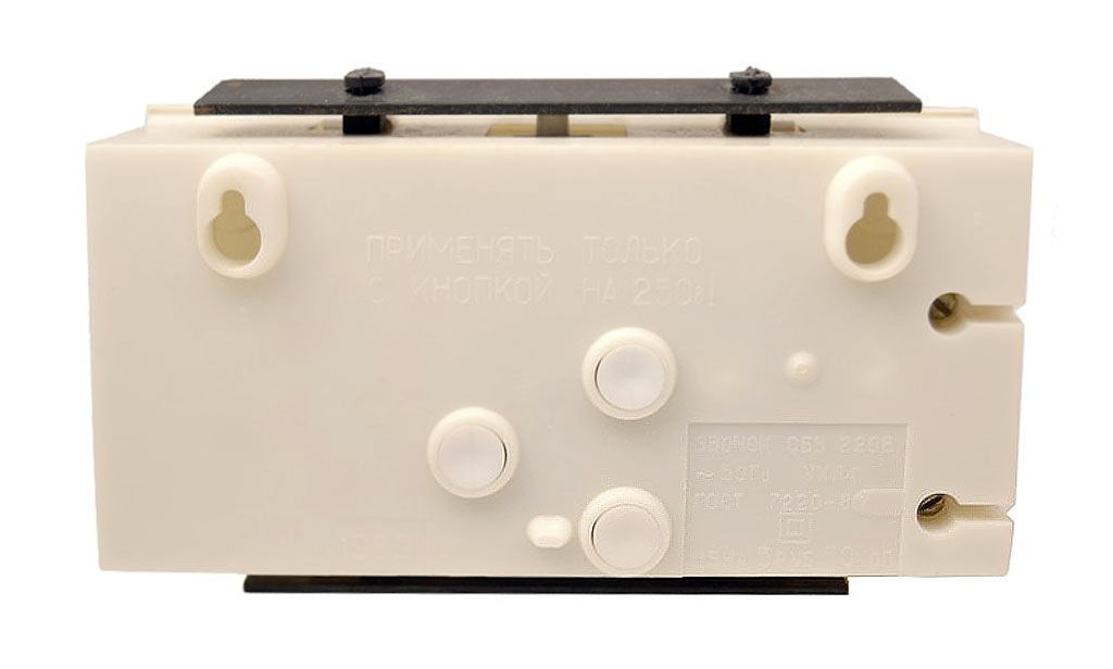 Звонок электрический с мелодичным боем выпускался предположительно с 1987 года в городе Томске.