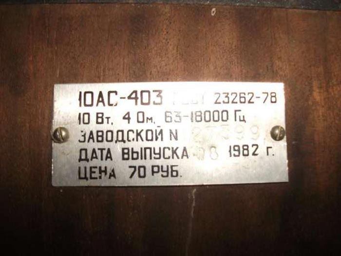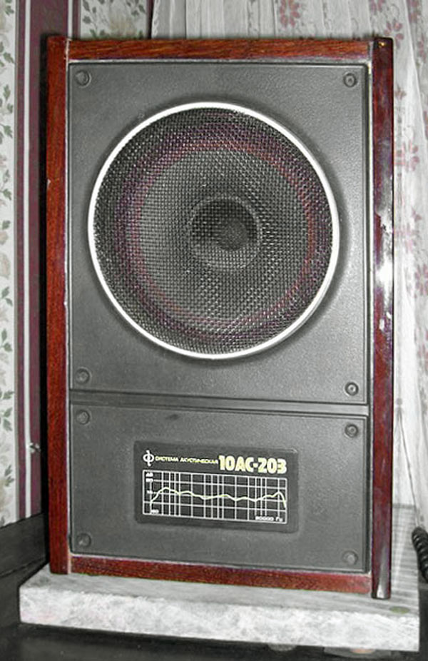 Акустичесие системы *10АС-203* и *10АС-403* с начала 1977 года выпускал соответственно Брянский электромеханический завод и Смоленский завод *Измеритель*. АС - **10АС-203** по конструкции схожа с 10АС-403**, отличие в габаритах, массе и оформлении. Номинальная мощность 10 , максимальная 15 Вт. Диапазон 63...18000 Гц. Чувствительность 88 дБ. В АС установлен широкополосный динамик 10ГД-36/10ГД-36К. Сопротивление 4 Ом. Габариты АС 10АС-203 420х300х270 мм. Вес 8,5 кг.