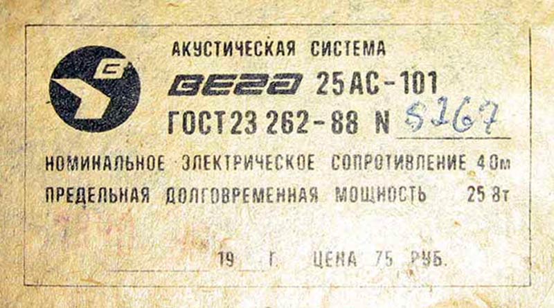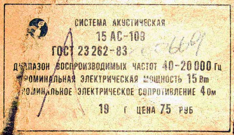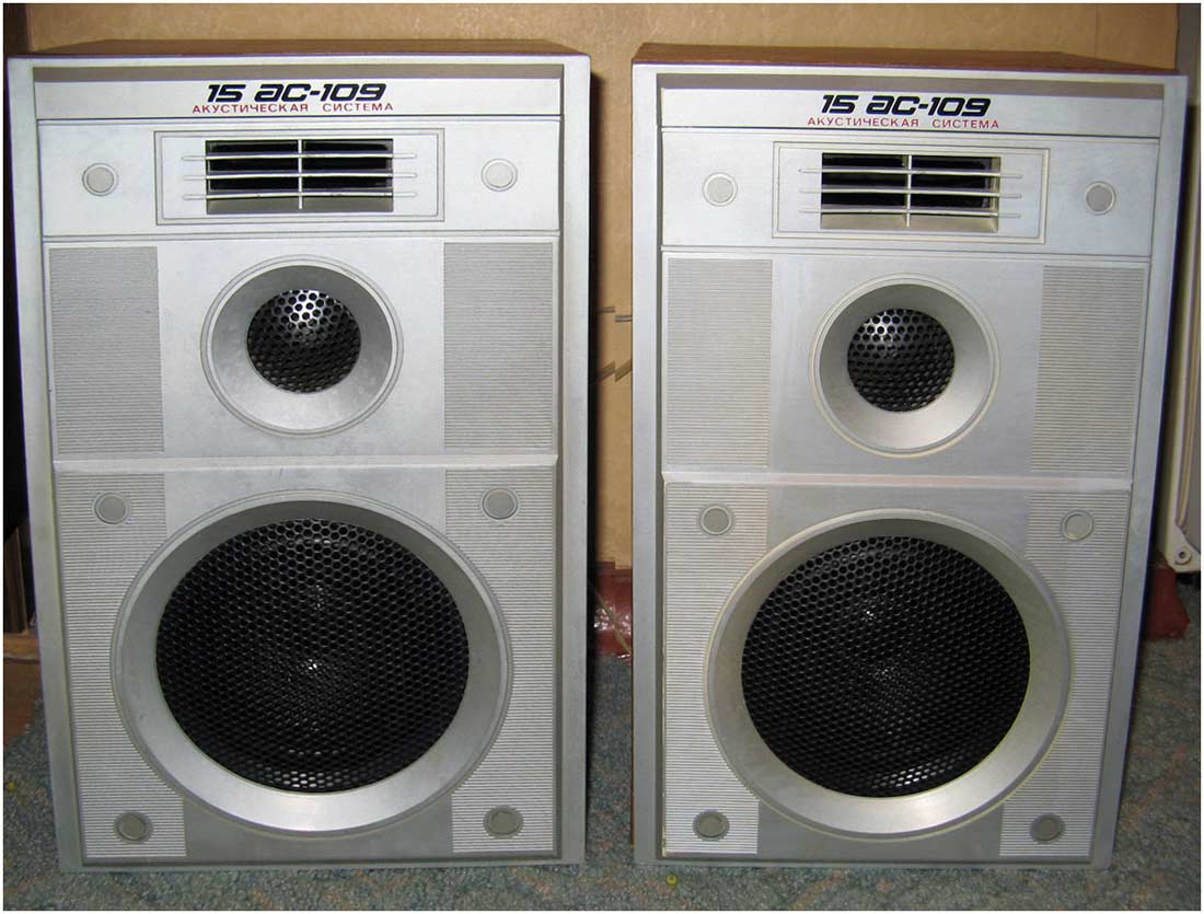 Акустические системы *15АС-109* и *15АС-110* с начала 1983 года выпускало Бердское ПО *Вега*. АС предназначены для высококачественного воспроизведения речевых и музыкальных звуковых программ в стационарных условиях. Рекомендуемая мощность усилителя 20...25 Вт. Технические характеристики АС: Диапазон воспроизводимых частот в условиях свободного полупространства 50...20000 Гц. Неравномерность АЧХ на нижней частоте 8 дБ. Уровень чувствительности АС (Па/Вт) - 84 дБ. Неравномерность АЧХ звукового давления в диапазоне 100..8000 Гц ±4 дБ. Гармонические искажения в диапазоне частот 250...1000 Гц - 2%, 1000...2000 Гц - 1,5%, 2000...6300 Гц - 1%. Номинальное электрическое сопротивление *15АС109* - 4 Ом, *15АС110* - 8 Ом. Минимальное значение электрического сопротивления АС соответственно 3,2 Ом и 6,4 Ом. Предельная шумовая (паспортная) мощность 25 Вт. Предельная мощность 50 Вт. Вид НЧ оформления - фазоинвертор. Габариты любой АС - 360х220х190 мм. Масса 6,8 кг. С 1988 года ПО *Вега* по ГОСТ 23262-88 выпускало аналгичные АС но с более высокой рабочей мощностью *25АС-101* и *25АС-102*.