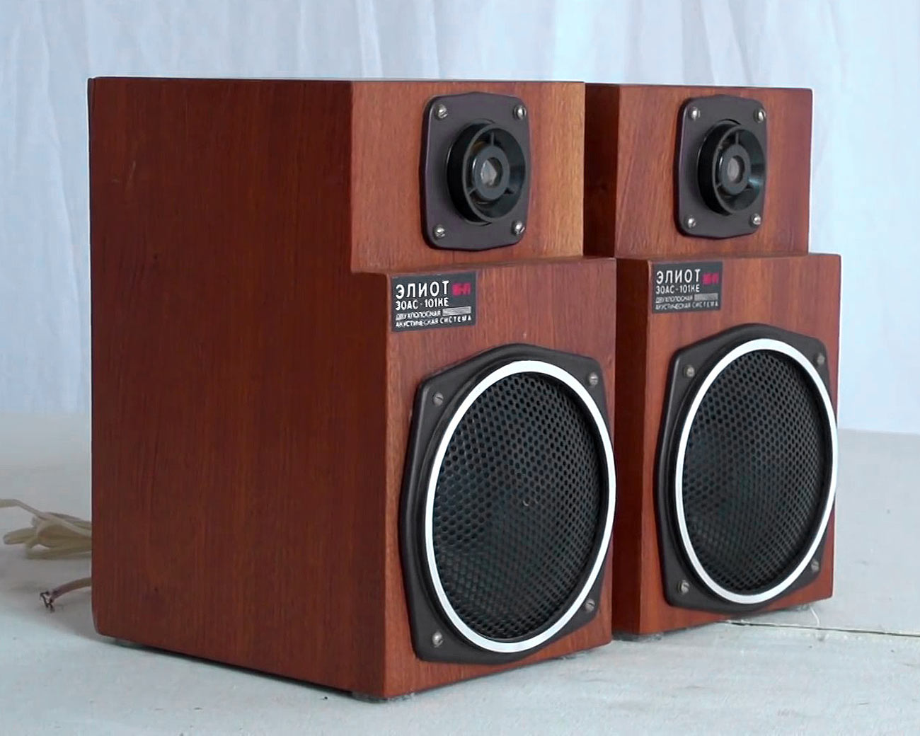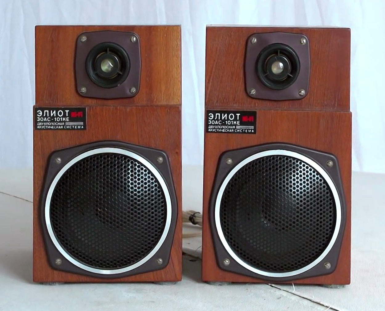 Акустическая система *30АС-101КЕ* (Элиот) малосерийно выпускалась с 1990 года кооперативом при Радиозаводе имени В.Д.Калмыкова, в Севастополе. АС предназначена для высококачественного воспроизведения звука с любых носителей. Корпус выполнен в виде прямоугольного ящика со срезом и без него. Внешне отделка выполнена шпоном различной отделки с различными декоративными накладками. Динамики расположены вдоль вертикальной оси. НЧ динамик закрыт декоративной сеткой. Внутреннее пространство колонок заполнено технической ватой. Ножки выполнены из войлока круглой формы. Фильтр состоит из конденсатора 0,33 мкФ последовательно соединённого с ВЧ головкой, НЧ головка подключена напрямую. Набор динамиков: 25ГДН-1-8-80, 6ГДВ-1-16. Входное сопротивление 4 Ома. Диапазон воспроизводимых частот 50...22000 Гц. Габариты АС - 250х145х180 мм.