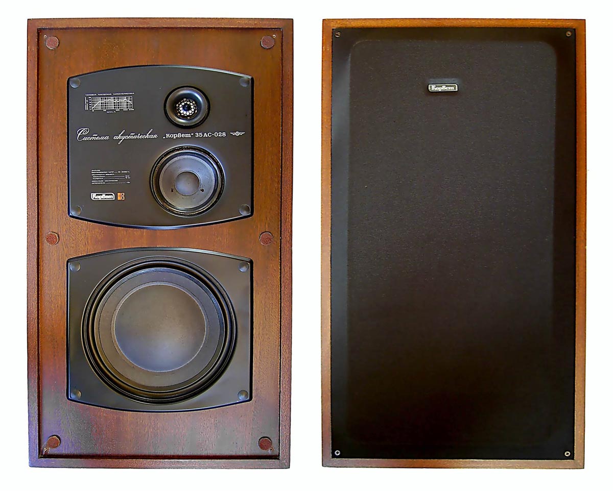 Акустические системы *Корвет 35АС-208* с 1982 года, *Корвет 35АС-028* и *Кливер 35АС-028* с 1986 года выпускали Ленинградское НПО *Океанприбор* и Краснолучский завод *Красный Луч*. Все акустические системы совершенно одинаковы. Они предназначены для высококачественного воспроизведения речевых и музыкальных программ и рассчитаны для совместной работы с УКУ высокого класса с сответствующей выходной мощностью. АС планировали выпускать в зеркальном варианте, но кроме опытных и рекламных образцов, серийные АС были не зеркальными. Объём АС - 99 дм/2. Диапазон рабочих частот звука - 25...25000 Гц. Номинальная мощность на входе 20 Вт. Максимальная мощность на входе 100 Вт. Масса одной акустической системы 30 кг.