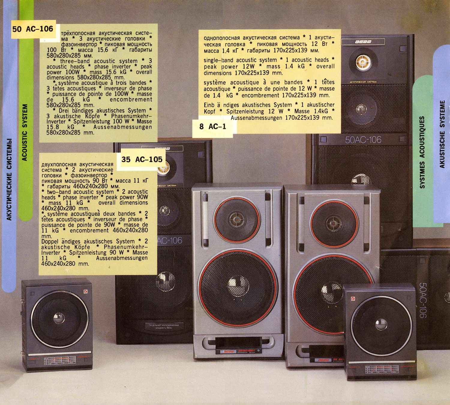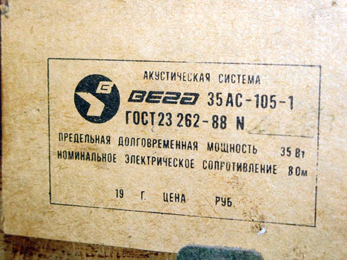 Акустические системы *Вега 35АС-105* и *Вега 35АС-105-1* с 1989 и 1991 года выпускал Бердский радиозавод. Диапазон частот: 50...20000 Гц. Чувствительность: 86 дБ. Долговременная мощность: 35 Вт. Кратковременная мощность: 90 Вт. Рекомендуемая мощность усилителя: 15...35 Вт. Сопротивление: 8 Ом. Размеры АС: 460х240х280 мм. Вес: 11 кг. Более подробная информация о параметрах АС в рекламных проспектах.