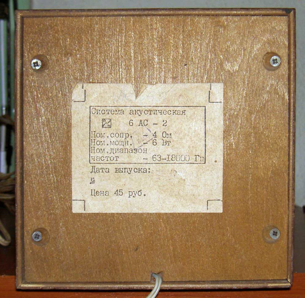 Акустическая система *6АС-2* выпускалась с I-кв 1975 года Рижским радиозаводом имени А.С. Попова. Двухполосная АС закрытого типа *6АС-2* входила в комплект радиолы *Мелодия-101С*. Корпус АС сделан из многослойной фанеры, шпонирован ценными породами дерева. Технические характеристики: Диапазон воспроизводимых частот - 63...18000 Гц. Номинальное электрическое сопротивление - 4 Ом. Номинальная подводимая мощность 6, максимальная 10 Вт. В АС установлены громкоговорители типа 10ГДН-1 или 6ГД-6 и 6ГДВ-1 или 3ГД-2. Габариты АС - 157х157х300 мм.