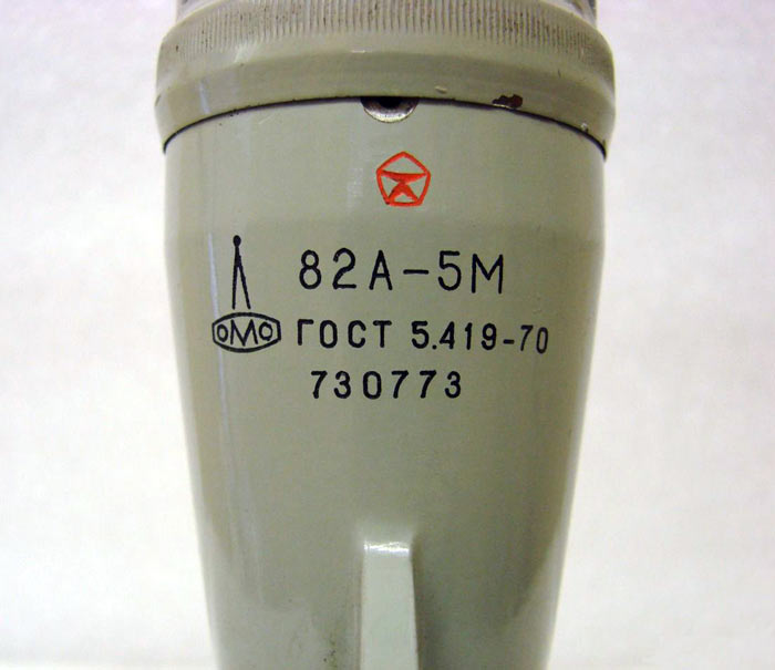 Микрофон *82А-5М* выпускался с 1964 года Ленинградским объединением *ЛОМО*. Универсальный, для записи речи на киностудиях и на натуре. Диапазон звуковых частот 50...10000 Гц. Чувствительность 1,75 мВ/Па. Неравномерность ЧХ 10 дБ. Направленность ОН. Сопротивление нагрузки 250 Ом. Габариты 46х135 мм. Вес 350 г.
