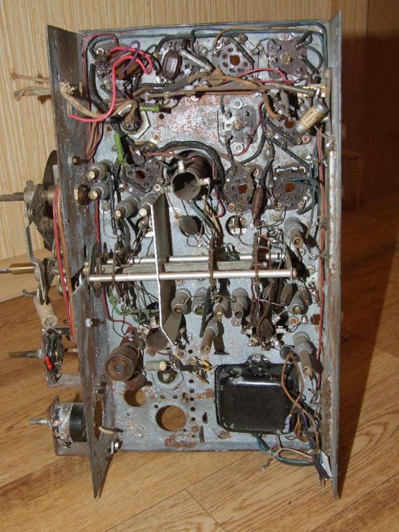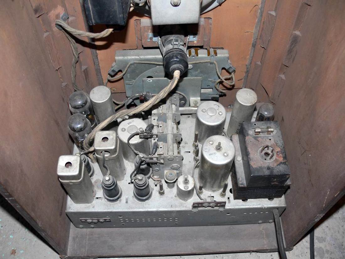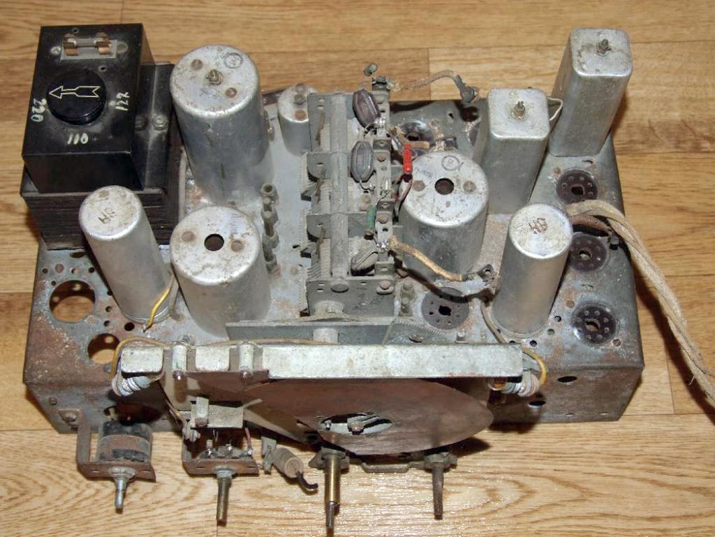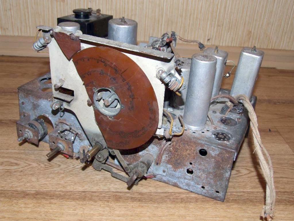 Радиоприёмник сетевой ламповый *9Н-4* возможно с 1937 года выпускал Воронежский завод *Электросигнал*. *9Н-4* это 9 ламповый Настольный приёмник 4-й разработки. Для его разработки модели была использована техническая документация фирмы **RCA** (США). В приёмнике применены радиолампы: 6К7, 6Л7, 6Ж7, 6Х6, 6Ф5, 6Ф6, 6Е5, 5Ц4С. В значительной серии выпущенных радиоприёмников применялись зарубежные лампы-аналоги. Диапазоны радиоволн: ДВ 715...2000 м (Х), СВ 175...575 м (А), промежуточные волны 46...170 м (В) и КВ 13,5...48 м (С). Чувствительность приёмника с хорошей наружной антенной на всех диапазонах около 50 мкв. Избирательность по соседнему каналу 46 дБ. Выходная мощность 2 Вт. Полоса воспроизводимых звуковых частот 80...6000 Гц. Потребляемая от сети мощность 75 Вт. Размеры футляра 580х310х420 мм. Вес аппарата 26 кг. На передней панели радиоприёмника имеется 5 ручек управления. Слева находится переключатель **музыка-речь** совмещенный с выключателем сети, далее громкость, сдвоенная ручка настройки на частоту с верньером, далее переключатель диапазонов и регулятор тембра по ВЧ. Радиоприёмник заключён в деревянный корпус. Для каждого диапазона есть своя отдельная шкала, отградуированная в Кгц и Мгц, сменяющаяся при переключении диапазонов и видимая через вырез в металлическом обрамлении. По нижней шкале отградуированной в УЕ, можно легко запомнить настройку на интересную радиостанцию. Индикатор настройки выполнен на лампе 6Е5.