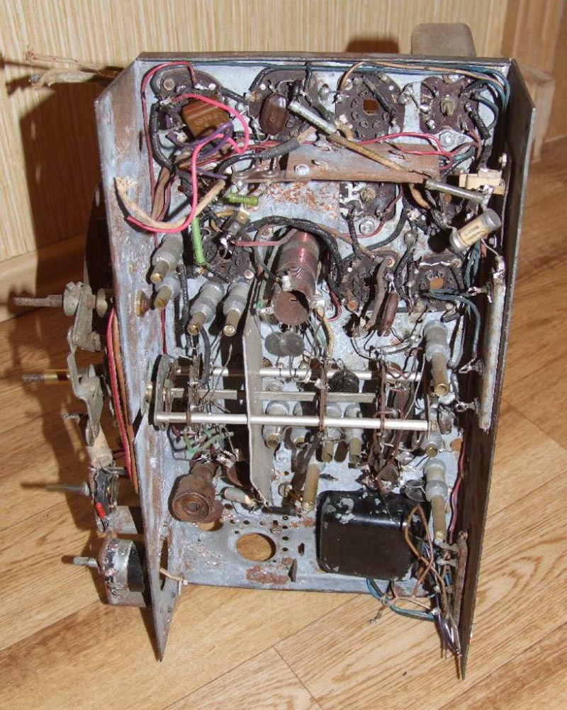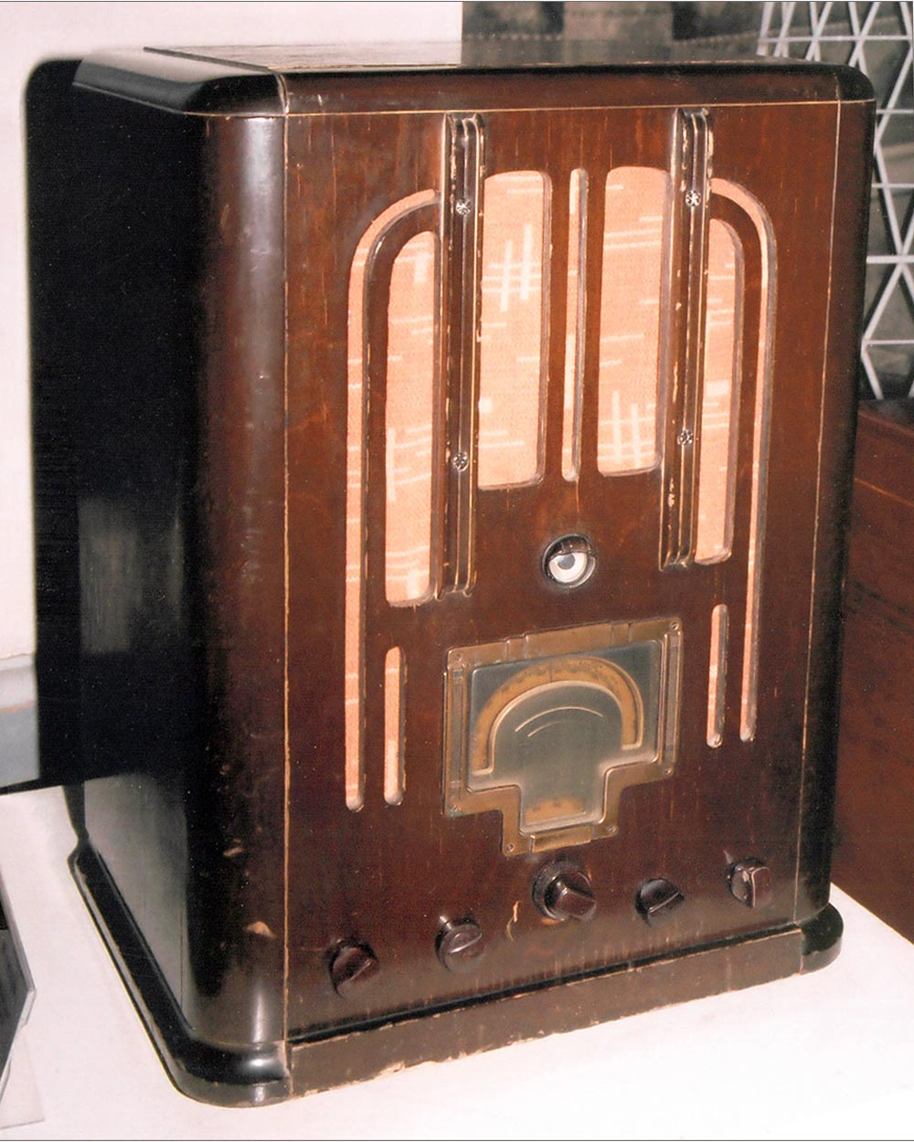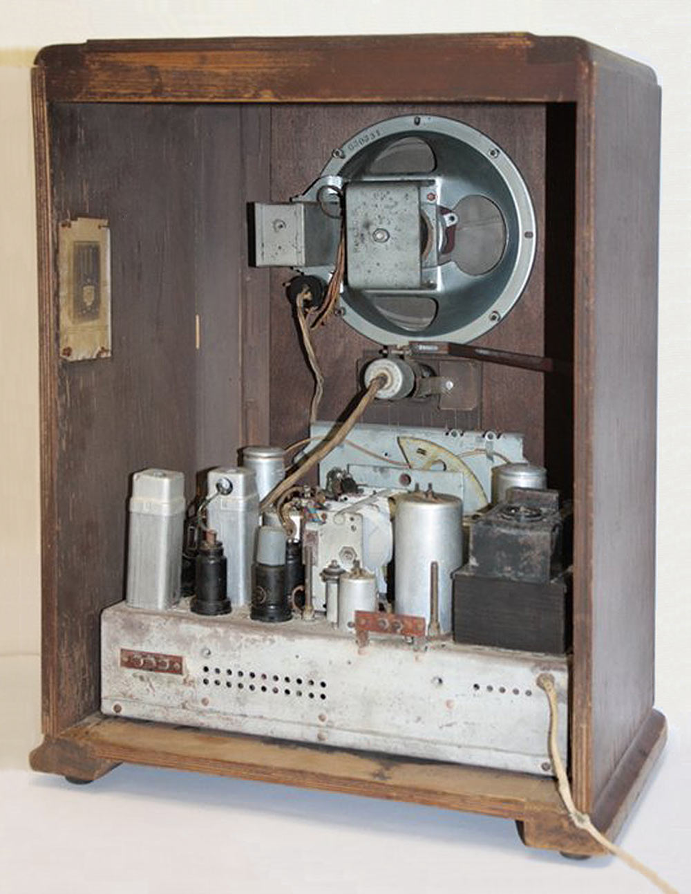 Радиоприёмник сетевой ламповый *9Н-4* возможно с 1937 года выпускал Воронежский завод *Электросигнал*. *9Н-4* это 9 ламповый Настольный приёмник 4-й разработки. Для его разработки модели была использована техническая документация фирмы **RCA** (США). В приёмнике применены радиолампы: 6К7, 6Л7, 6Ж7, 6Х6, 6Ф5, 6Ф6, 6Е5, 5Ц4С. В значительной серии выпущенных радиоприёмников применялись зарубежные лампы-аналоги. Диапазоны радиоволн: ДВ 715...2000 м (Х), СВ 175...575 м (А), промежуточные волны 46...170 м (В) и КВ 13,5...48 м (С). Чувствительность приёмника с хорошей наружной антенной на всех диапазонах около 50 мкв. Избирательность по соседнему каналу 46 дБ. Выходная мощность 2 Вт. Полоса воспроизводимых звуковых частот 80...6000 Гц. Потребляемая от сети мощность 75 Вт. Размеры футляра 580х310х420 мм. Вес аппарата 26 кг. На передней панели радиоприёмника имеется 5 ручек управления. Слева находится переключатель **музыка-речь** совмещенный с выключателем сети, далее громкость, сдвоенная ручка настройки на частоту с верньером, далее переключатель диапазонов и регулятор тембра по ВЧ. Радиоприёмник заключён в деревянный корпус. Для каждого диапазона есть своя отдельная шкала, отградуированная в Кгц и Мгц, сменяющаяся при переключении диапазонов и видимая через вырез в металлическом обрамлении. По нижней шкале отградуированной в УЕ, можно легко запомнить настройку на интересную радиостанцию. Индикатор настройки выполнен на лампе 6Е5.