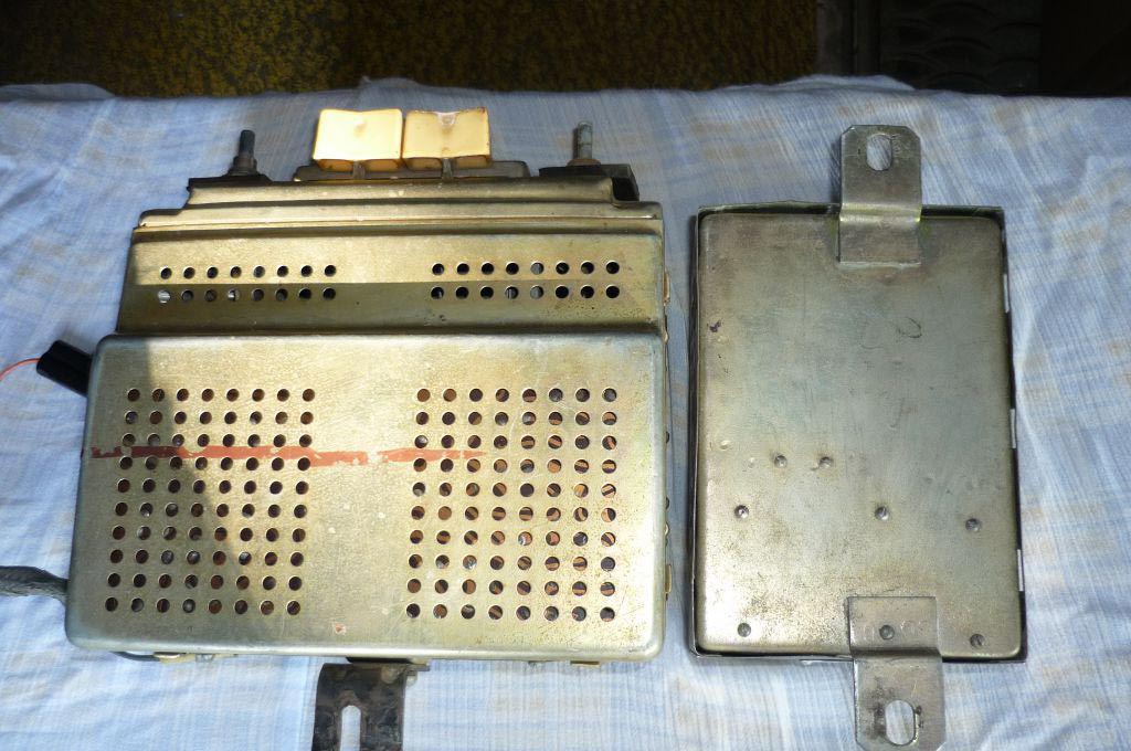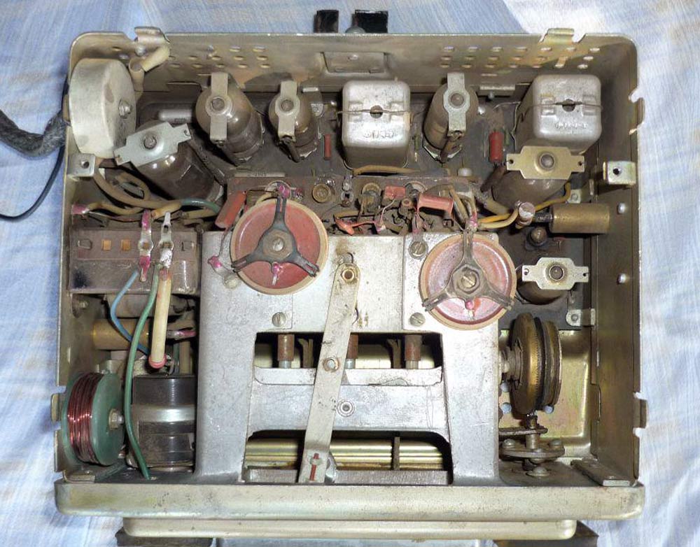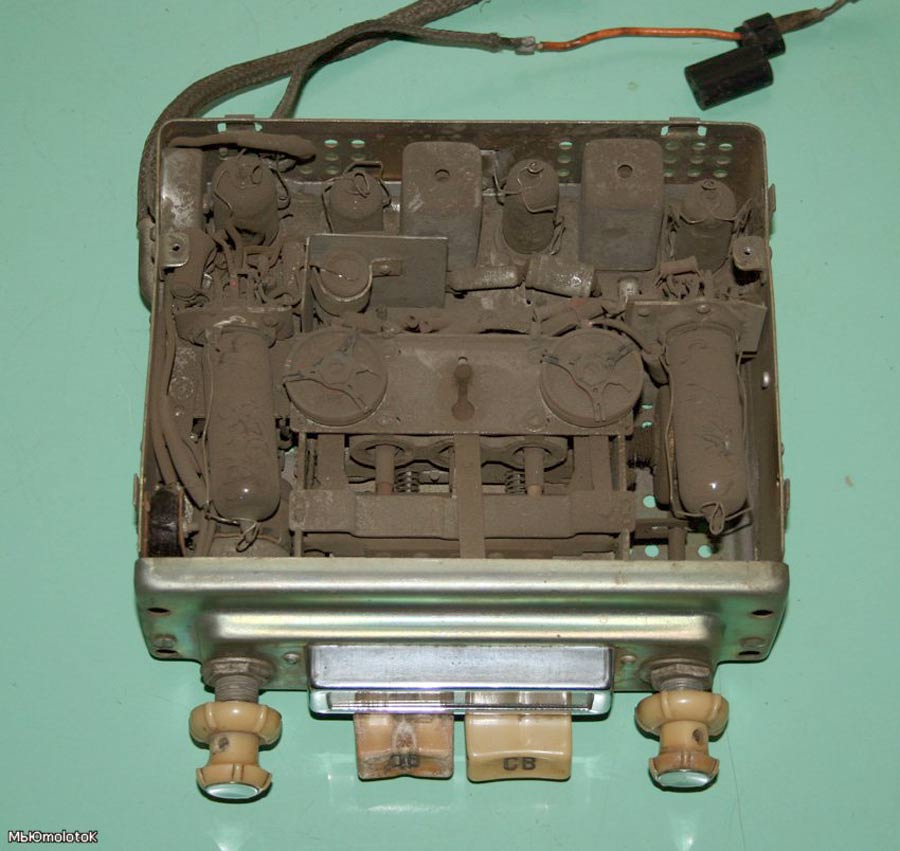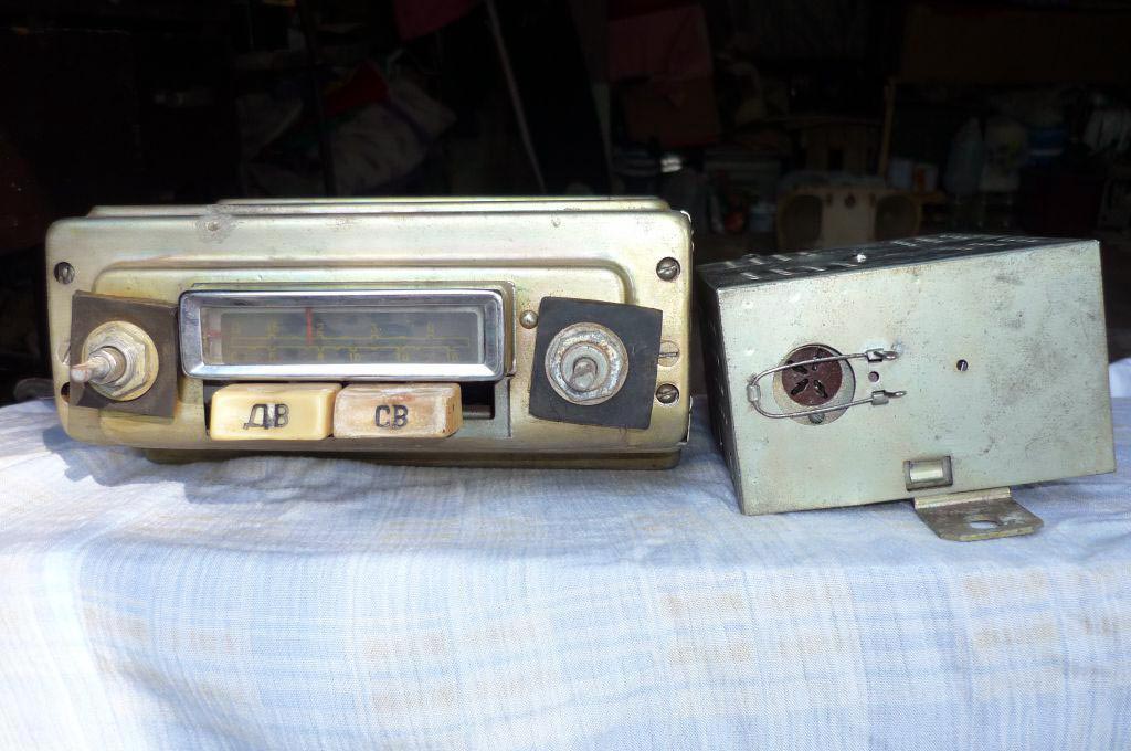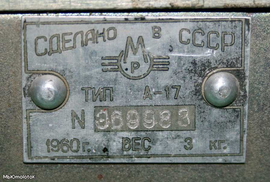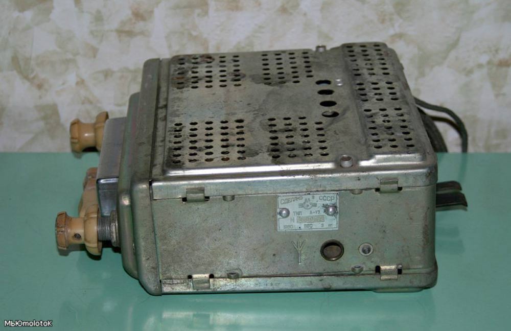 Радиоприёмник автомобильный *А-17* выпускал с 1958 года Муромский радиозавод. **А-17** - шестиламповый двухдиапазонный автомобильный супергетеродин, предназначенный для установки в автомобилях марок Москвич-403 и 407. Возможна установка и в автомобиль ГАЗ-21. Питание осуществляется от аккумулятора автомобиля напряжением 12,8 вольта с заземлённым минусом. Радиоприёмник **А-17** практически аналогичен модели **А-12** за исключением фиксированной настройки. Диапазоны: ДВ 150...415 кГц, СВ 520...1600 кГц. Чувствительность: ДВ 250, СВ 100 мкВ. Избирательность ДВ 28, СВ 26 дБ. Номинальная выходная мощность 2 Вт. Потребляемая мощность 42 Вт. В комплекте блок питания на вибропреобразователе **ВП-9**, или на транзисторах **БП-12**, громкоговоритель укреплённый на отражательной доске и кабель антенны. С 1959 года завод выпускал радиоприёмник *А-17А* по схеме и конструкции аналогичный базовому, кроме применения в нём уже печатного монтажа.