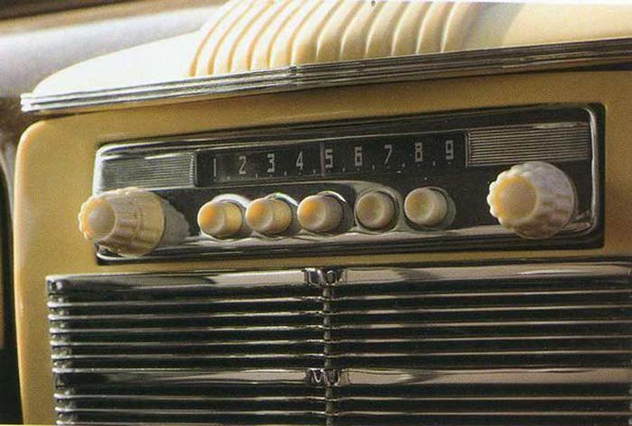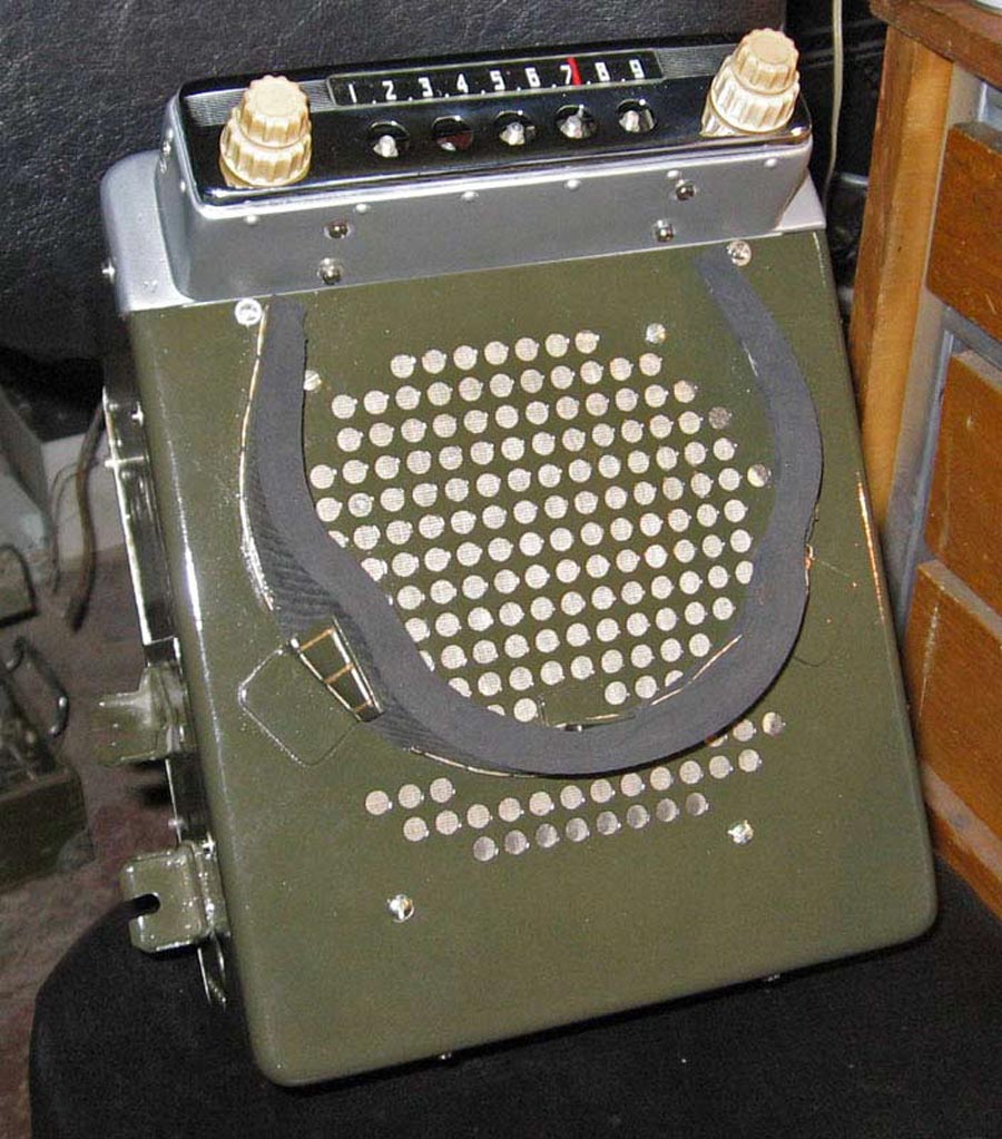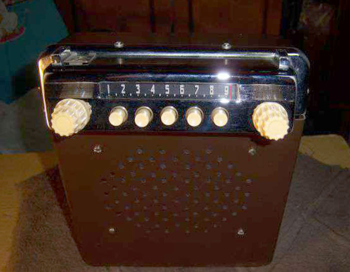 Радиоприёмник автомобильный *А-5* с 1952 года выпускал Муромский радиозавод. Приёмник **А-5** является 6 ламповым супергетеродином и предназначен для установки в автомобилях **ЗИЛ-110**, **ЗИМ** (ГАЗ-12). Выпускался в 2-х вариантах, с питанием от аккумуляторов напряжением 6 и 12 В. Питание анодов у ламп от вибропреобразователя. Приёмник вместе с громкоговорителем и блоком питания собран в общем корпусе. Дополнительный громкоговоритель стоял в задней части салона автомобиля или за перегородкой. Настройка приёмника производится изменением индуктивности катушек, с помощью перемещения сердечников из альсифера. Катушки индуктивности вместе с кнопочным переключателем, выключателем питания, регуляторами громкости и тембров выполнены отдельным блоком. Шкала с условной градуировкой в виде равномерных делений и освещается с торцов, цвет её меняется в зависимости от положения регуляторов тембра с помощью цветных светофильтров, укреплённых на осях этих же регуляторов; красный подчеркивает высшие частоты, зеленый низшие, белый указывает на воспроизведение средних частот звукового спектра. Технические параметры: Диапазоны частот: ДВ 150...410 кГц, СВ 530...1450 кГц, КВ1 6...6,25 МГц, КВ2 9,5...9,7 МГц, КВ3 11,7...11,9 МГц. ПЧ 465 кГц. Чувствительность модели в ДВ диапазоне 200, СВ 50, в диапазоне КВ 40 мкВ. Избирательность по соседнему каналу 28 дБ. По зеркальному 34 дБ на ДВ, 40 дБ на СВ и 34, 30, 20 дБ соответственно на КВ поддиапазонах. Диапазон воспроизводимых частот 80...5000 Гц. Выходная мощность 2 Вт. Потребляемая мощность 53 Вт.