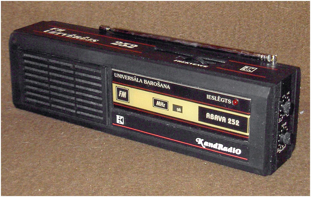 Портативный радиоприёмник *Абава-252* с 2000 года выпускал Кандавский радиозавод. Приёмник рассчитан на приём в диапазоне УКВ-FM - 87.5...108 МГц. ПЧ 10,7 МГц. Конструкция приёмника во многом напоминает предшественника, модель *Abava РП-8330*. Выполнен радиоприёмник на микросхеме TEA5710 от Philips, усилитель ЗЧ на МС TDA7052. Настройка на станции производится с помощью КПЕ. Имеются регуляторы громкости и тембра ВЧ. АС состоит из динамической головки 3ГДШ-27 или аналогичной импортной WC121F_06VD. Питание универсальное: от сети (встроенный БП) или от 6 элементов А-343. Номинальная выходная мощность 0,25, максимальная 0,6 Вт. Габариты радиоприёмника 322х95х80 мм, масса 1 кг.
