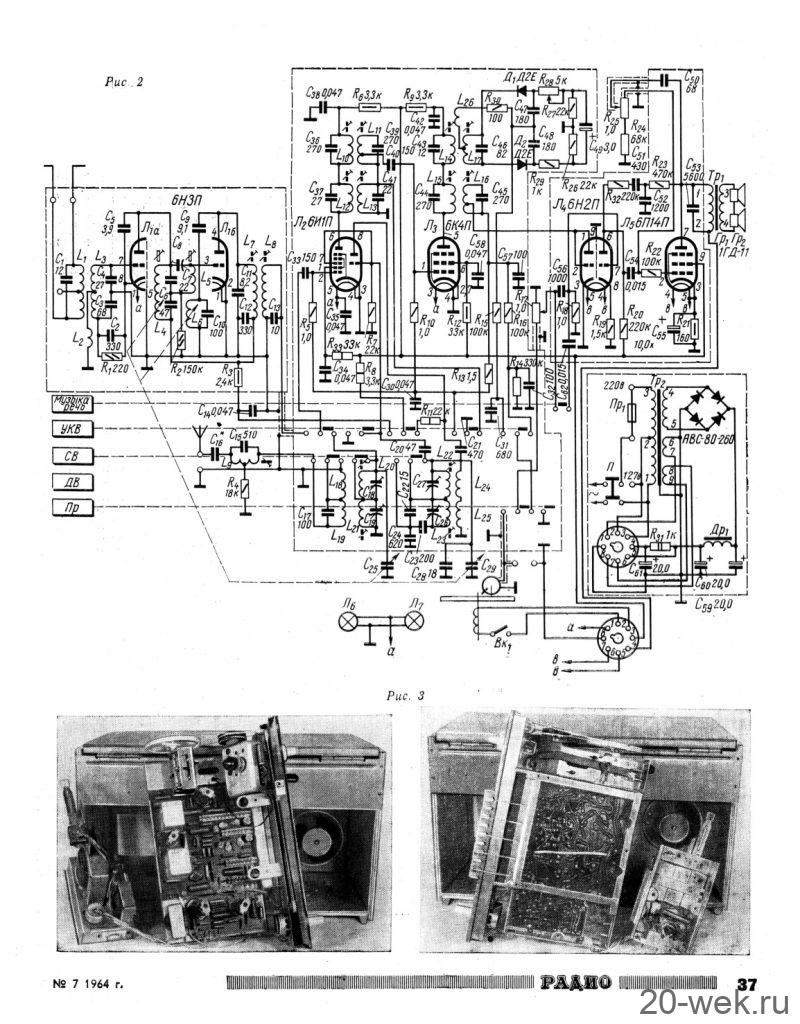 Радиолы сетевые ламповые *Агат* и *Чайка* с начала 1965 года выпускалась Днепропетровским радиозаводом. Отечественной промышленностью в 1964...1965 году выпускались радиолы «Агат», «Ангара», «Сибирь», «Сириус» и «Чайка», Все они состоят из 5-лампового радиоприёмника 3-го класса на унифицированных узлах и электропроигрывающего устройства. Радиоприёмник радиолы обеспечивает приём вещательных станций в диапазоне длинных (150...408 кгц), средних (525...1605 кгц) и ультракоротких (65,8...73 Мгц) волн. Номинальная выходная мощность усилителя НЧ - 0,5 вт, полоса воспроизводимых звуковых частот 150...7000 гц. В радиоприёмнике применена плавная регулировка тембра на высших звуковых частотах. Потребляемая мощность от сети переменного тока напряжением 127 или 220 в при приёме радиостанций - 45 вт, при воспроизведении грамзаписи - 55 вт. Электропроигрывающее устройство имеет три скорости: 33 1/3, 45 и 78 об/мин. Акустическая система радиолы «Агат» состоит из двух фронтальных громкоговорителей 1ГД-30, у радиол «Ангара», «Сириус» и «Чайка» из двух громкоговорителей 1ГД-28, у радиолы «Сибирь» - из двух громкоговорителей типа 1ГД-11 или 1ГД-5. Корпуса у всех радиол деревянные, отделаны под ценные породы дерева. Лицевые панели радиол имеют пластмассовое обрамление. Радиол *Агат* и *Чайка* было выпущено всего несколько сотен. Уже весной 1965 года обе радиолы были сняты с производства и заменены одной модернизированной моделью *Чайка-М*, где наряду с диапазонами ДВ, СВ, УКВ уже был добавлен и диапазон коротких волн с 25 до 75 метров. Радио №7/1964, ст.36