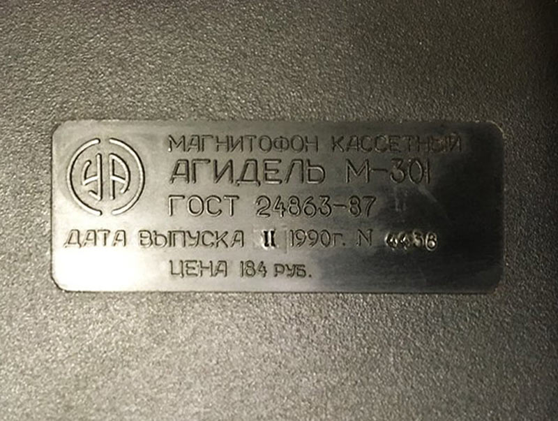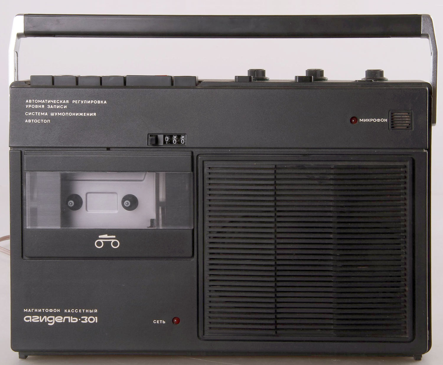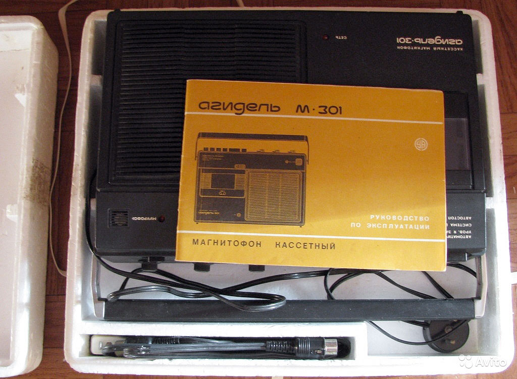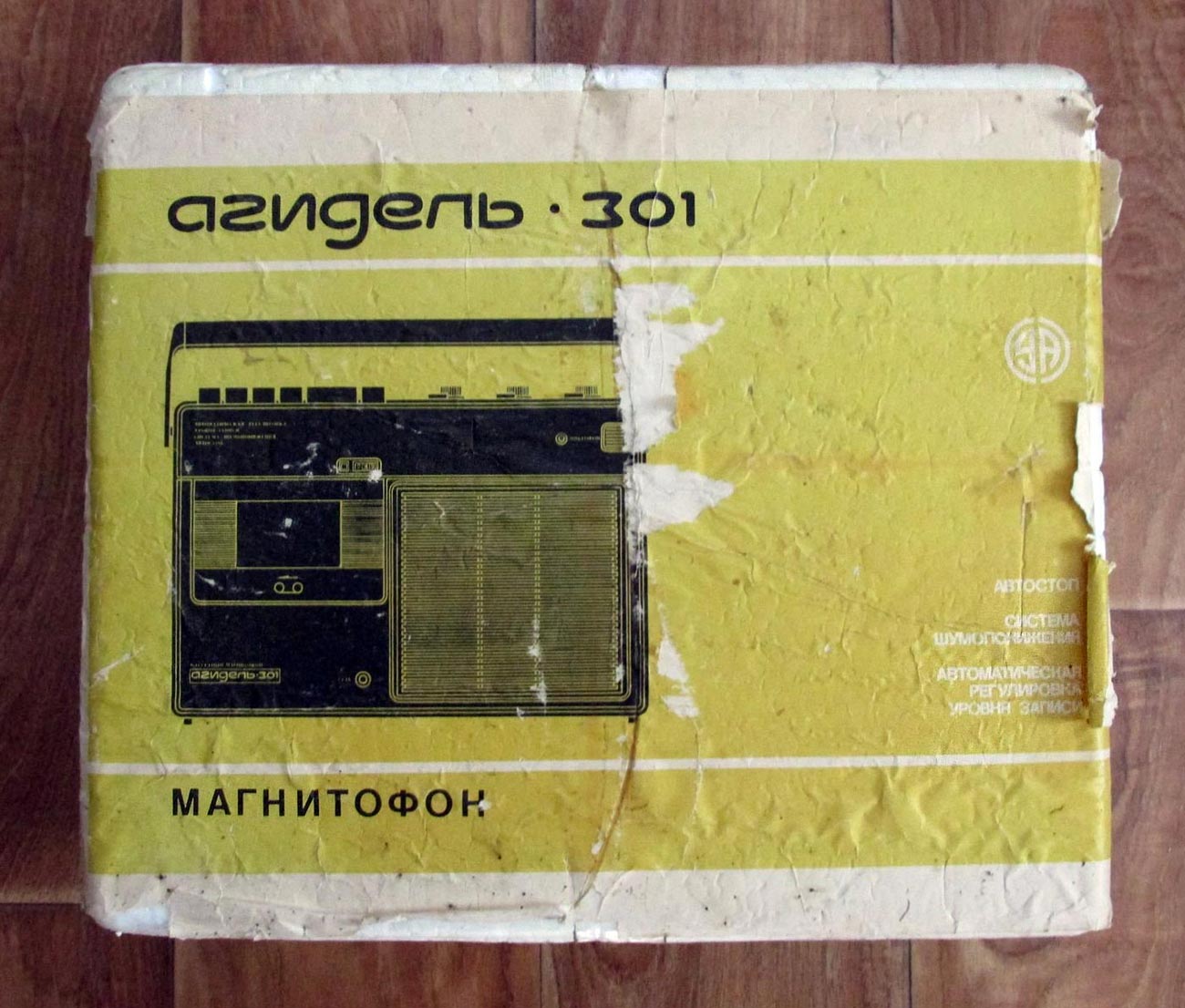 Портативный кассетный магнитофон *Агидель-301* с 1985 года выпускало Уфимское Приборостроительное ПО. Магнитофон 3-й группы сложности с универсальным питанием, предназначен для записи фонограмм на магнитную ленту в кассетах МК, с последующим воспроизведением. В модели имеется электретный микрофон, система АРУЗ, отключаемая СШП, регуляторы тембра по НЧ и ВЧ. Скорость протяжки магнитной ленты 4,76 см/сек. Относительный уровень шумов в канале З/В -52 дБ. Коэффициент гармоник на ЛВ - 4%. Коэффициент детонации - 0,3%. Полоса рабочих частот на ЛВ - 40...12500 Гц. Частота тока подмагничивания 60 кГц. Питание - шесть элементов 343 или сеть. Максимальная выходная мощность от батарей 2 Вт, от сети 2,5 Вт. Габариты магнитофона - 320х220х100 мм. Вес - 3,5 кг. По одинаковой схеме, конструкции и оформлении (кроме наименования и надписей) Воронежский завод *Электроприбор* выпускал магнитофон **Элегия-301** (описан на сайте), а Арзамасский ПСЗ имени 50-летия СССР магнитофон **Легенда-301** (выпущено всего 8 аппаратов). На задней крышке магнитофонов могли быть наименования *Агидель М-301*, *Легенда М-301* и *Элегия М-301*, то есть с добавлением буквы *М* (магнитофон). Были и без буквы.