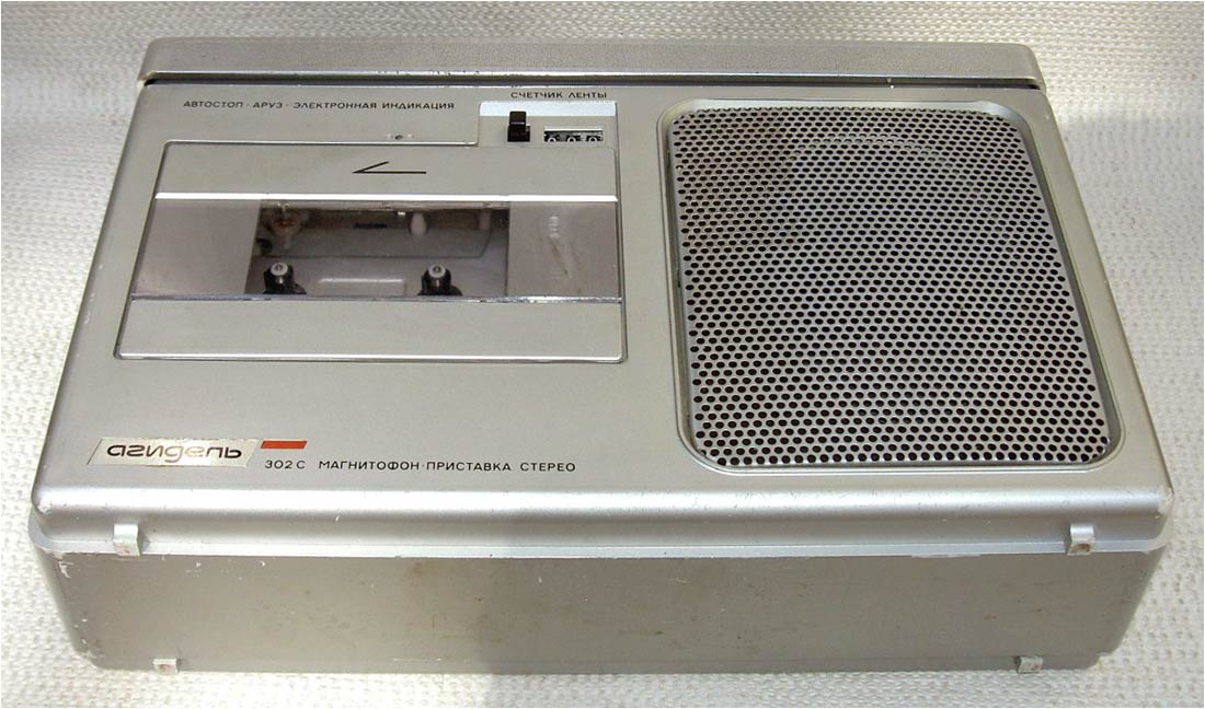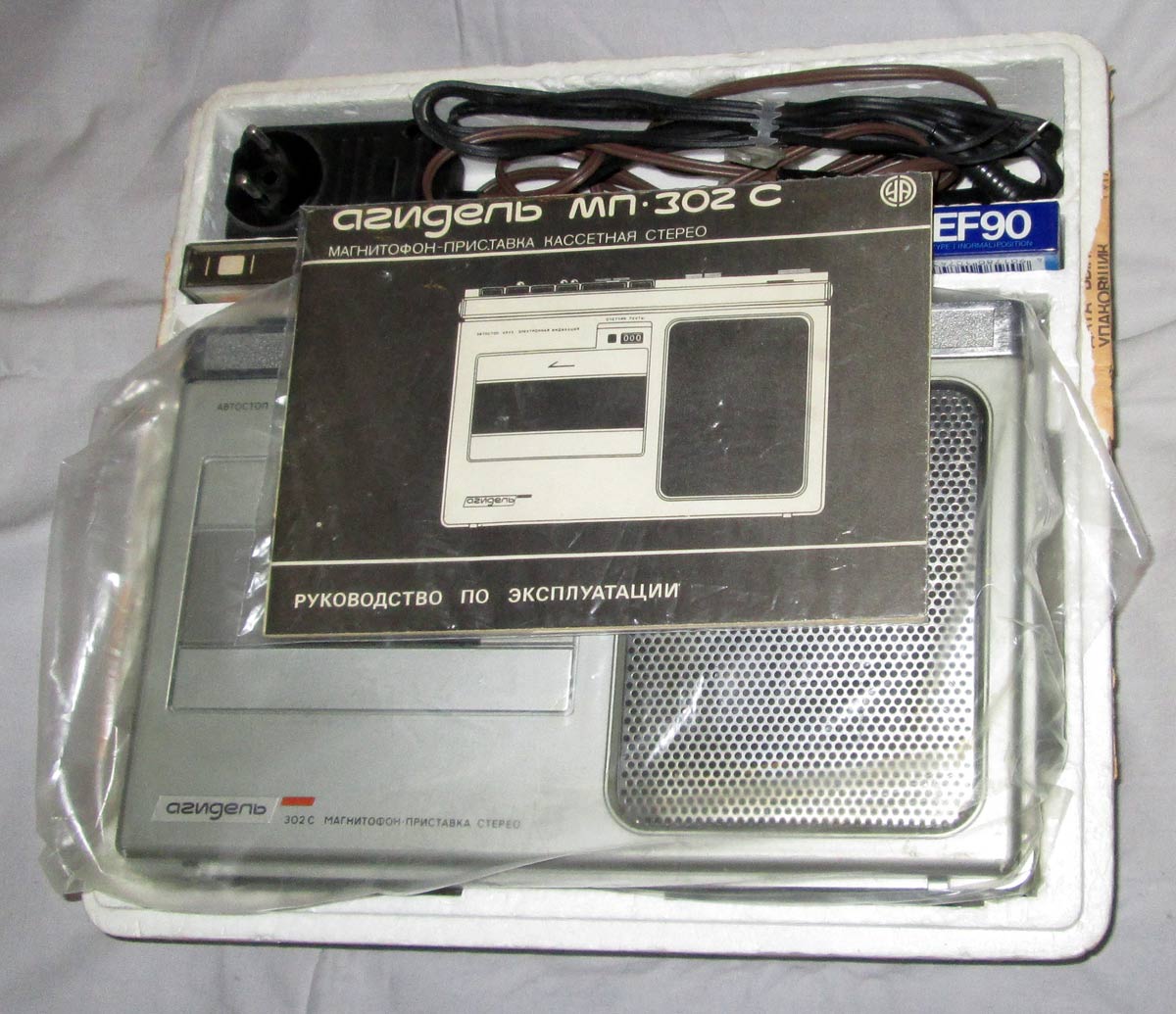 Магнитофон-приставка *Агидель МП-302С* с 1990 года выпускался Уфимским Приборостроительным ПО. Он предназначен для записи моно и стереофонических фонограм и воспроизведение на собственный громкоговоритель монофонических фонограмм, а стереофонических через головные стереофонические телефоны или внешний стереофонический усилитель с АС. Диапазон записываемых и воспроизводимых через линейный выход частот - 40...12500 Гц, через встроенную АС 100...10000 Гц. Номинальная выходная мощность УЗЧ при работе от батарей 1 Вт, максимальная 2 Вт. Габариты магнитофона-приставки 282х185х85 мм. Вес 2,4 кг.