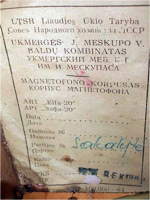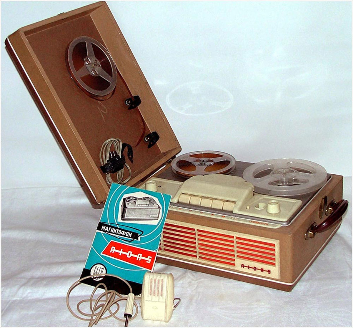 Катушечный магнитофон *Айдас* (Эльфа-20) с 1962 года выпускал Вильнюсский электротехнический завод *Эльфа*. Магнитофон предназначен для любительской записи фонограм с радиоприёмника, проигрывателя, микрофона, радиолинии или другого магнитофона. Чувствительность со входа микрофона 3 мкВ, звукоснимателя или приёмника 260 мВ, радиолинии 10 В. В магнитофоне применена 2-х дорожечная система записи на магнитную ленту типа 2 или 6. Скорость протяжки магнитной ленты 19,05 см/сек. Магнитофон комплектуется кассетами № 15, с ёмкостью 250 метров ленты и длительностью записи на двух дорожках 45 мин. Диапазон рабочих частот по электрическому тракту 40...12000 Гц при работе с лентой типа 6, на ленте типа 2 диапазон уже и составляет 50...10000 Гц. Номинальная выходная мощность 1 Вт при коэффициенте искажений на линейном выходе 3%, а на эквиваленте громкоговорителя 6%. Уровень шума 40 дБ. Уровень детонации 0,4%. Магнитофон питается от сети. Потребляемая мощность 80 Вт. Размеры модели 400х300х186 мм, масса 12 кг. Наименование *Айдас* (Aidas) в переводе с Литовского - Эхо. Описание и схемы Радио №4/1966