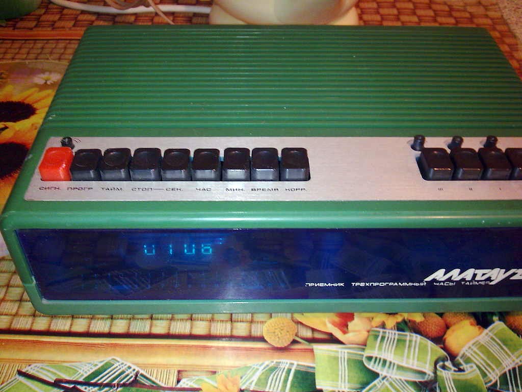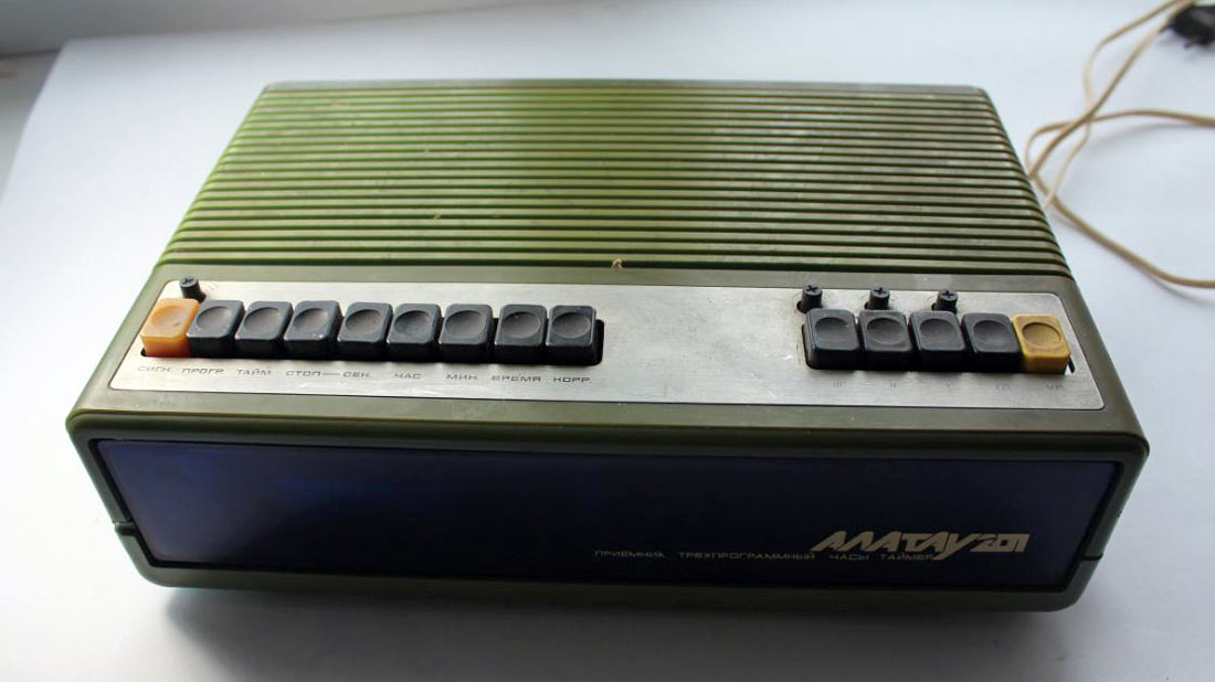 Приёмники трёхпрограммные *Алатау-201* и *Прибой-201* с 1986 года выпускали Ленинградский завод *Пластприбор* и Алма-Атинский ЭТЗ. Кроме наименования ПТ одинаковы, поэтому описан ПТ *Прибой-201*. ПТ с электронными часами **Прибой-201** сочетает в себе ПТ 2-й группы сложности и электронные часы, способные работать в режимах таймера и будильника. Помимо удобств, комбинация 2-х приборов постоянного пользования имеет также определенный экономический эффект, так как при этом снижаются энергопотребление, материалоёмкость и себестоимость изделия. По техническим и потребительским характеристикам, по уровню разработки и производства ПТ **Прибой-201** соответствует высшей категории качества. Его параметры лучше нормируемых ГОСТом для ПТ 2-й группы сложности: шире диапазон воспроизводимых частот на НЧ каналах 100...12500 Гц, несколько больше отношение сигнал/фон - 46 дБ, меньше коэффициент гармоник по звуковому давлению в области звуковых частот 100...200 Гц по НЧ каналу и 200...400 Гц по НЧ и ВЧ каналам. Номинальная выходная мощность 0,4 Вт. Потребляемая мощность 3,2 Вт. Есть ступенчатая регулировка тембра ВЧ. Габариты ПТ - 320х200х94 мм. Масса - 2,6 кг.