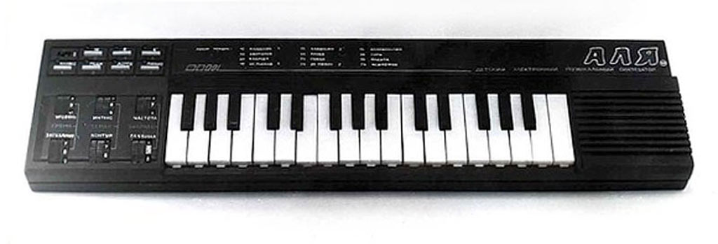 Электронный музыкальный синтезатор *Аля* производился с 1991 года Запорожским ПО *Радиоприбор*. Синтезатор имеет уменьшенную мини-клавиатуру, современный внешний вид и широкие функциональные возможности. Инструмент представляет собой мелодический музыкальный синтезатор, предназначенный в основном для развития творческих способностей и получения навыков игры на электронных клавишных инструментах, он может быть использован как для домашнего музицирования, так и для исполнения сольных партий в любительский ансамблях, а также для создания звуковых эффектов. ЭМИ позволяет получать звучание, характерное для традиционных инструментов (флейта, гобой, кларнет, горн, труба, валторна, орган, виолончель, ксилофон, различные варианты звучания электропианино и клавесина), имитировать звучание колокольчика, гитары, балалайки, музыкальной шкатулки, электрогитары с бустером, вводить выделение звука, характерного для медных духовых инструментов, тембровую модуляцию, изменять скорость затухания звука и уровень поддержки, использовать *вау*-эффект, регулируемое по глубине и частоте частотное вибрато. Инструмент имеет возможность транспонировать строй на одну октаву вверх или вниз, осуществлять игру приемами легато и стаккато, плавно изменять громкость и тембр звучания, также имеется внутренний громкоговоритель и предусмотрена возможность подключения внешнего усилителя или головных телефонов, а также внешнего источника питания. В ЭМИ используются псевдосенсорные органы коммутации со светодиодной индикацией режима работы, резонансы корпуса и динамика устранены специально рассчитанной панелью акустического сопротивления, синтезатор прост в управлении и не требует специальной подготовки, наличие фиксированных режимов работы в сочетании с органами плавного управления делает его удобным в работе и не сдерживает творческую фантазию исполнителя. Разработчики В.К.Рентюк (автор и главный конструктор), Е.В.Кухта, Э.С.Загоруля. Всего выпущено около 1000 инструментов. Технические характеристики: Номинальная выходная мощность 0,25 Вт. Номинальное напряжение источника питания 9 В. Диапазон питающих напряжений 6,3...12 В. Максимальный потребляемый ток 0,2 А. Диапазон клавиатуры, октав: 2 и 8/12. Диапазон звучания, октав: 4 и 8/12 (от F до с4). Генератор огибающей: три основных типа. Органы управления: Выключатель питания. Регулятор громкости. Регулятор скорости затухания. Регулятор тембра. Регулятор глубины тембровой модуляции (Контур). Регулятор глубины вибрато. Регулятор частоты вибрато. Тип вибрато: частотное в диапазоне 5...9 Гц. Коммутация режимов: псевдо-сенсоры с индикацией. Количество регистров 3. Количество основных (типовых) тембров: 12 (четыре в каждом регистре). Тональность настройки: До-мажор. Возможность подстройки тональности: есть. Возможность подстройки строя: есть. Габаритные размеры ЭМИ 470х120х40 мм. Вес без элементов питания 1,2 кг.