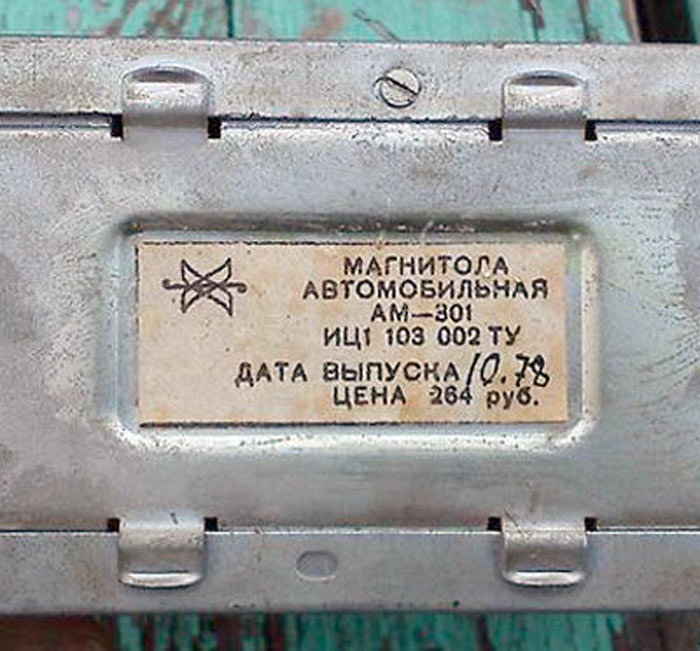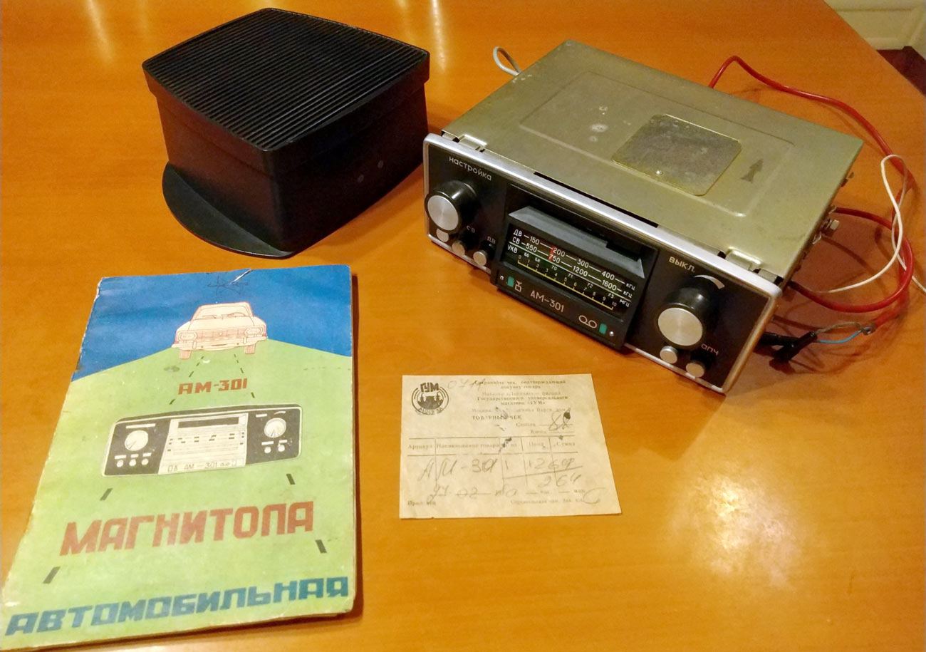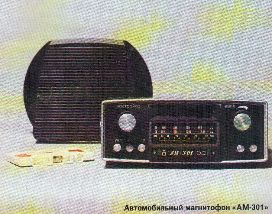 Автомобильная магнитола *АМ-301* с 1974 года выпускалась Загорским ПО *Звезда*. Магнитола рассчитана на установку в автомобили Жигули *ВАЗ-2103* и Москвич *ИЖ-2125*. Она обеспечивает приём радиостанций работающих в диапазонах ДВ, СВ и УКВ, а также для воспроизведения монофонических магнитных записей с унифицированных кассет МК-60. Номинальная выходная мощность 2,5 Вт. Диапазон воспроизводимых частот в АМ диапазонах 125...3550 Гц, на УКВ и при воспроизведении магнитной записи 125...7100 Гц. В магнитоле используется двухмоторный ЛПМ. АС состоит из громкоговорителя 4ГД8Е. Размеры магнитолы - 200х150х70 мм. Масса без АС - 2,8 кг. Цена комплекта 280 рублей. С 1978 года на Гродненском заводе автомагнитол выпускалась автомагнитола *Гродно-301*, аналог магнитолы *АМ-301*.