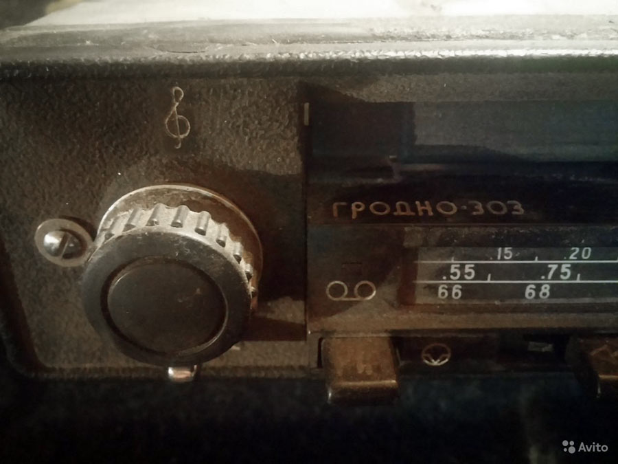 Автомобильные магнитолы *АМ-303* и *Гродно-303* с I-кв 1981 года выпускали Загорское ПО *Звезда* и Гродненский завод автомагнитол. Магнитолы одинаковы и предназначены для установки в автомобилях Волга ГАЗ-24. Магнитола работает в диапазонах ДВ, СВ, УКВ и воспроизводит фонограммы с магнитофонных кассет МК. Магнитолу можно установить и в салонах автомобилей Жигули ВАЗ-2101, ВАЗ-2102, ВАЗ-21011 или Москвич-2140, Москвич-2138. Магнитола работает от штыревой антенны типа АР-104Б, но можно использовать и АР-105, АР-108. В магнитоле предусмотрена АРУ, АПЧ в диапазоне УКВ, регулировка громкости, ускоренная перемотка ленты вперед и назад, автоматическое переключение режима работы с воспроизводения записей на приём радиостанций, кнопка пауза. При включённой магнитоле магнитофон выключается при установке кассеты в паз на лицевой стороне магнитолы и легком нажатии на кассету. В комплекте: АС из динамической головки 4ГД-8Е, 3 предохранителя ПМ2 (2А), кассета МК-60 с фонограммой в футляре, 2 резиновых пассика, 2 лампы СМН10-55-2, 6 шайб крепления подкассетника, провод для подключения к магнитоле АС. Диапазоны: ДВ - 150...405 кГц; СВ - 525...1.605 кГц; УКВ - 65,8...73,0 МГц. ПЧ трактов AM 465 кГц; ЧМ 10,7 МГц. Реальная чувствительность: ДВ - 150 ; СВ 50; УКВ - 5,0 мкВ. Избирательность по соседнему каналу на ДВ, СВ - 36 дБ, по зеркальному каналу: ДВ - 56; СВ - 46 дБ. Действие АРУ: при изменении входного сигнала на 26 дБ соответствующее изменение на выходе не более 6 дБ. Номинальная выходная мощность при КНИ 4% - 2,5 Вт, максимальная 4 Вт. Полоса воспроизводимых звуковых частот: ДВ, СВ 125...3550; УКВ и воспроизведении магнитной записи 125...7100 Гц. Скорость магнитной ленты 4,76 см/с. Коэффициент детонации ±0,35%. Питание от аккумулятора. Габариты АМЛ - 200х57х175 мм. Масса 4 кг.