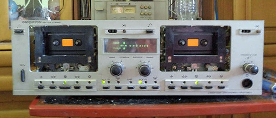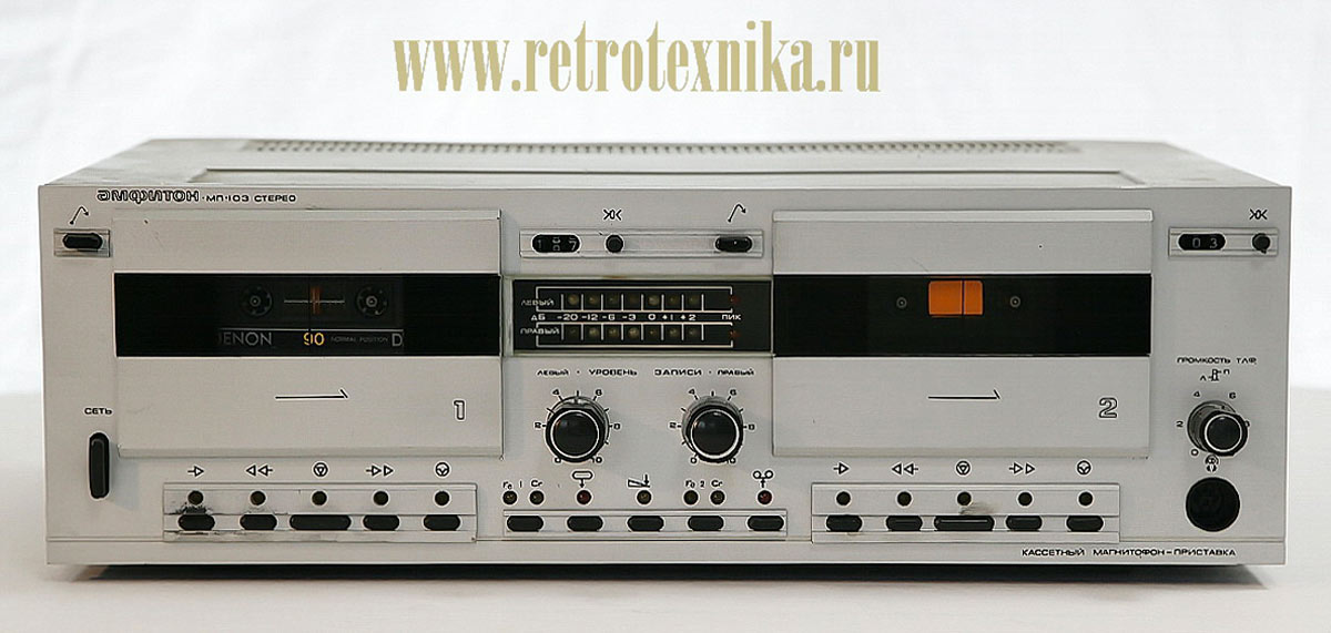 Стереофонический двухкассетный магнитофон-приставка *Амфитон МП-103С* опытно выпущен в 1986 году Ульяновским механическим заводом.