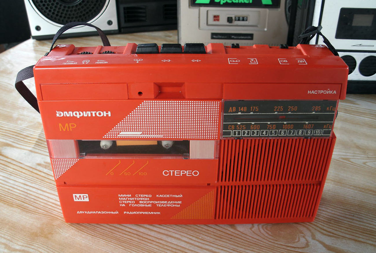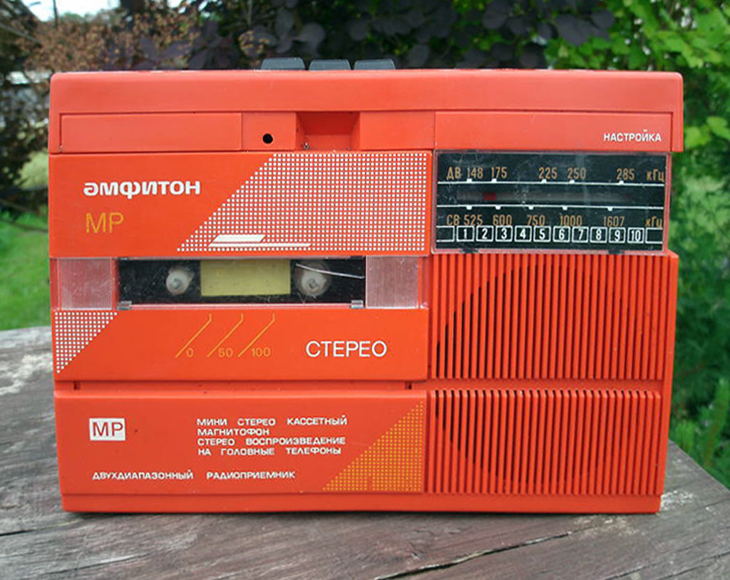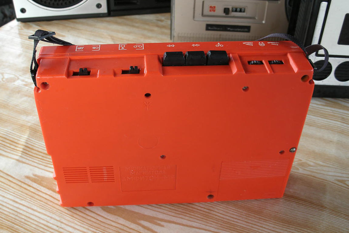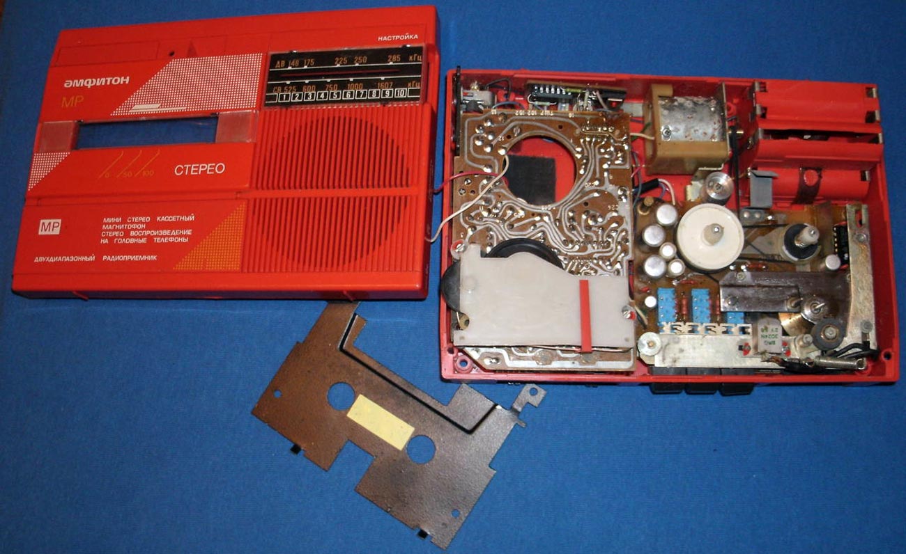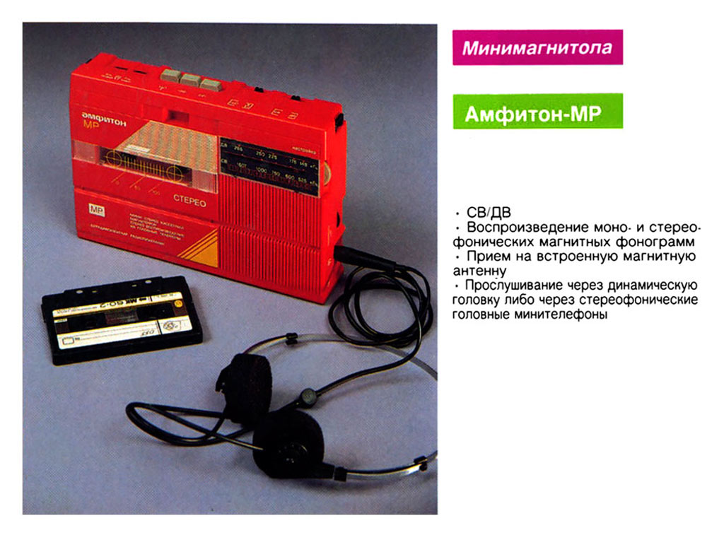 Портативная транзисторная магнитола *Амфитон-МР* с I-кв 1987 года выпускал Омский завод им. Карла Маркса и Бакинское ПО *Радиостроение*. Магнитола служит для приёма радиостанций в диапазонах ДВ, СВ и для прослушивания моно и стерео (на головные стереотелефоны) фонограмм с компакт-кассет. Имеется ускоренная перемотка ленты в обоих направлениях, раздельная регулировка громкости при работе на стереотелефоны. Питание от 6 элементов А-316 или сеть через внешний БП. Чувствительность в диапазоне ДВ - 2, СВ - 1,5 мВ/м; селективность 30 дБ; диапазон воспроизводимых частот по звуковому давлению при приёме 315...3150 Гц; на телефонном выходе при прослушивании кассет 63...12500 Гц; КНИ 5%; максимальная выходная мощность 0,5 Вт; коэффициент детонации ±0,5%; размеры модели 196х136х41мм, масса 0,8 кг. Цена с телефонами 145 рублей. С 1988 года оформление магнитолы было несколько изменено. Магнитола выпускалась ограниченной серией, а в Баку лишь штучной.