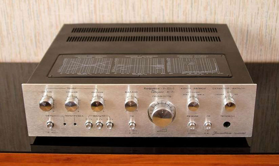 Усилитель низкой частоты *Амфитон У-101-1С* выпускался с 1986 года Львовским ЛПО имени Ленина. Усилитель первой группы сложности предназначен для двухканального усиления и коммутации сигналов НЧ от различных источников звуковых программ при работе в помещении. Основные технические характеристики: Диапазон воспроизводимых частот: 20...20000 Гц. Неравномерность АЧХ: ±1,5 дБ. Сопротивления подключаемых АС: 4 Ом. Номинальная мощность: 20 Вт/4 Ом. Коэффициент нелинейных искажений: 0,3%. Потребляемая мощность: 125 Вт. Размер усилителя: 430х125х405 мм. Масса: 11,5 кг.