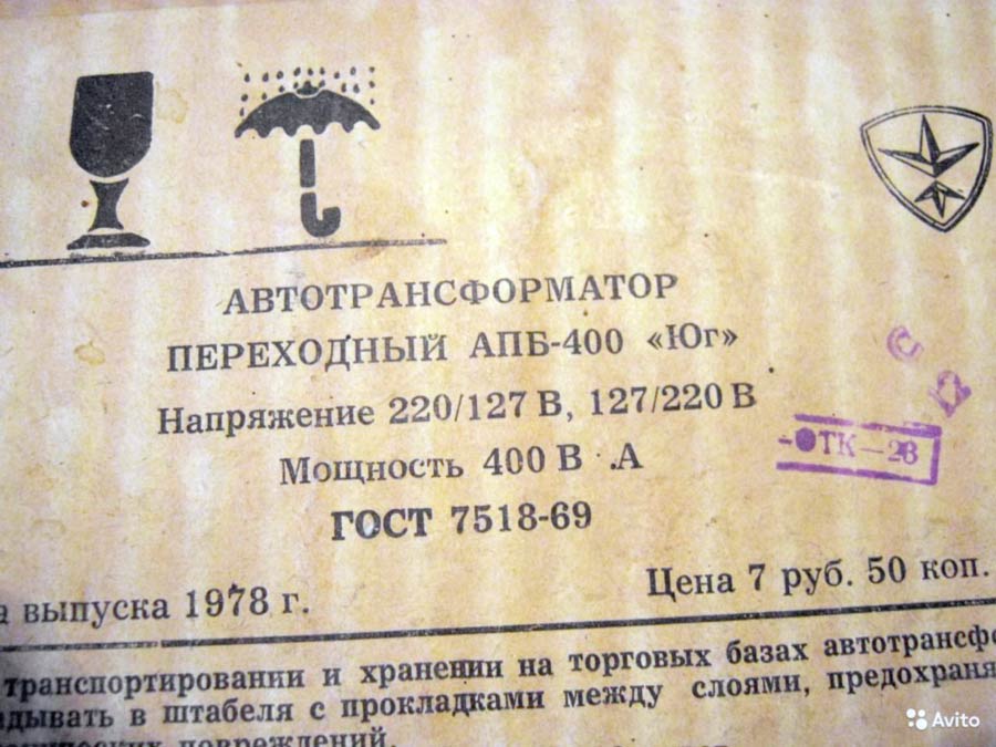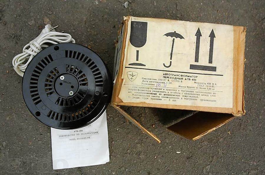 Автотрансформатор переходной бытовой *АПБ-400* выпускался предположительно с 1977 года несколькими предприятиями. АПБ предназначен для согласования входных напряжений электроприборов мощностью до 400 ватт с электрической сетью. Если в сети 127 В, то на выходе автотрансформатора 220 В или наоборот.