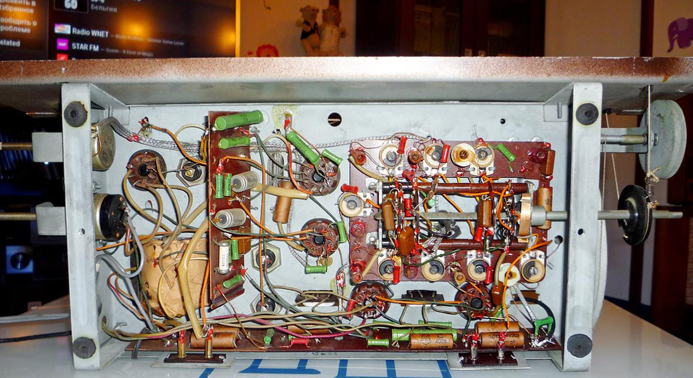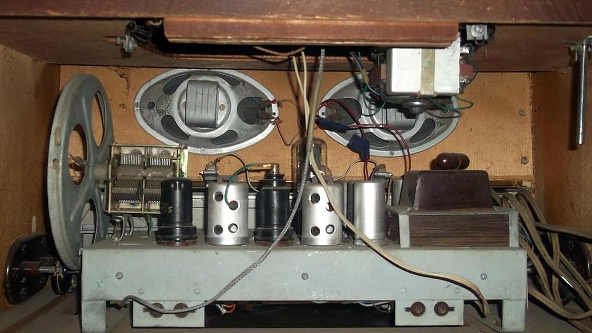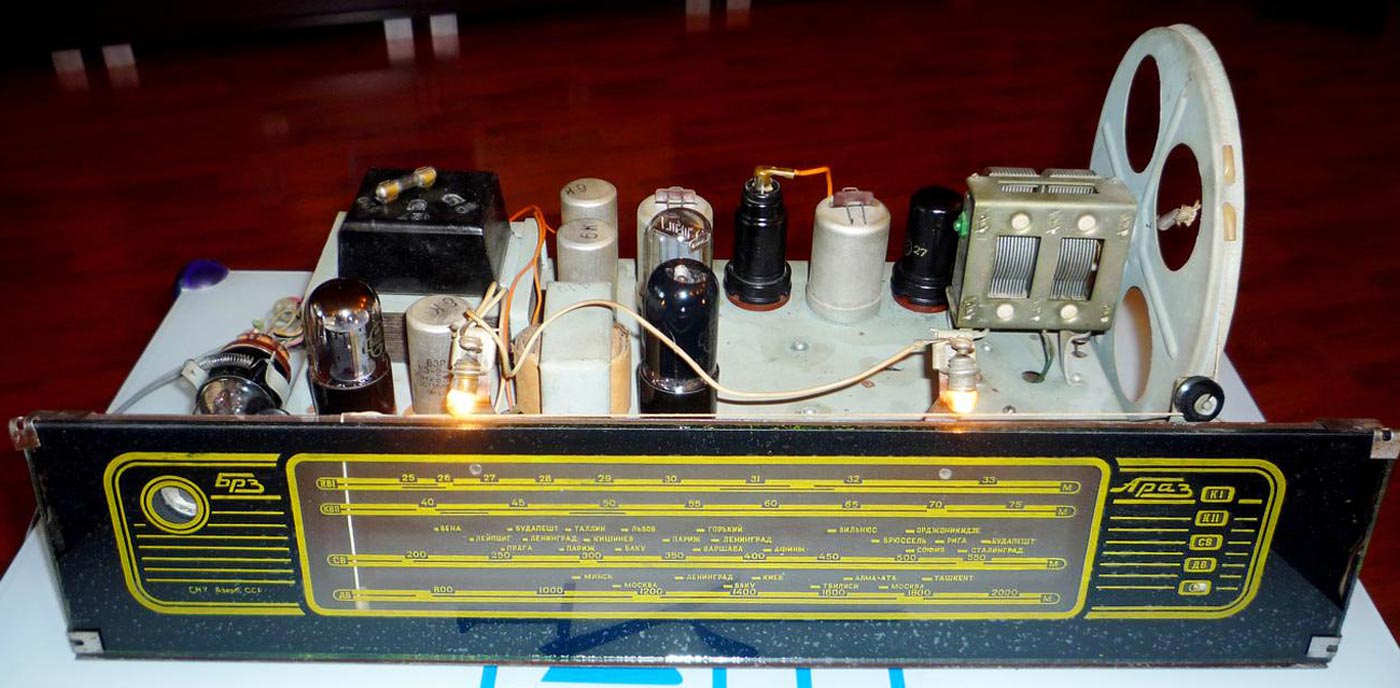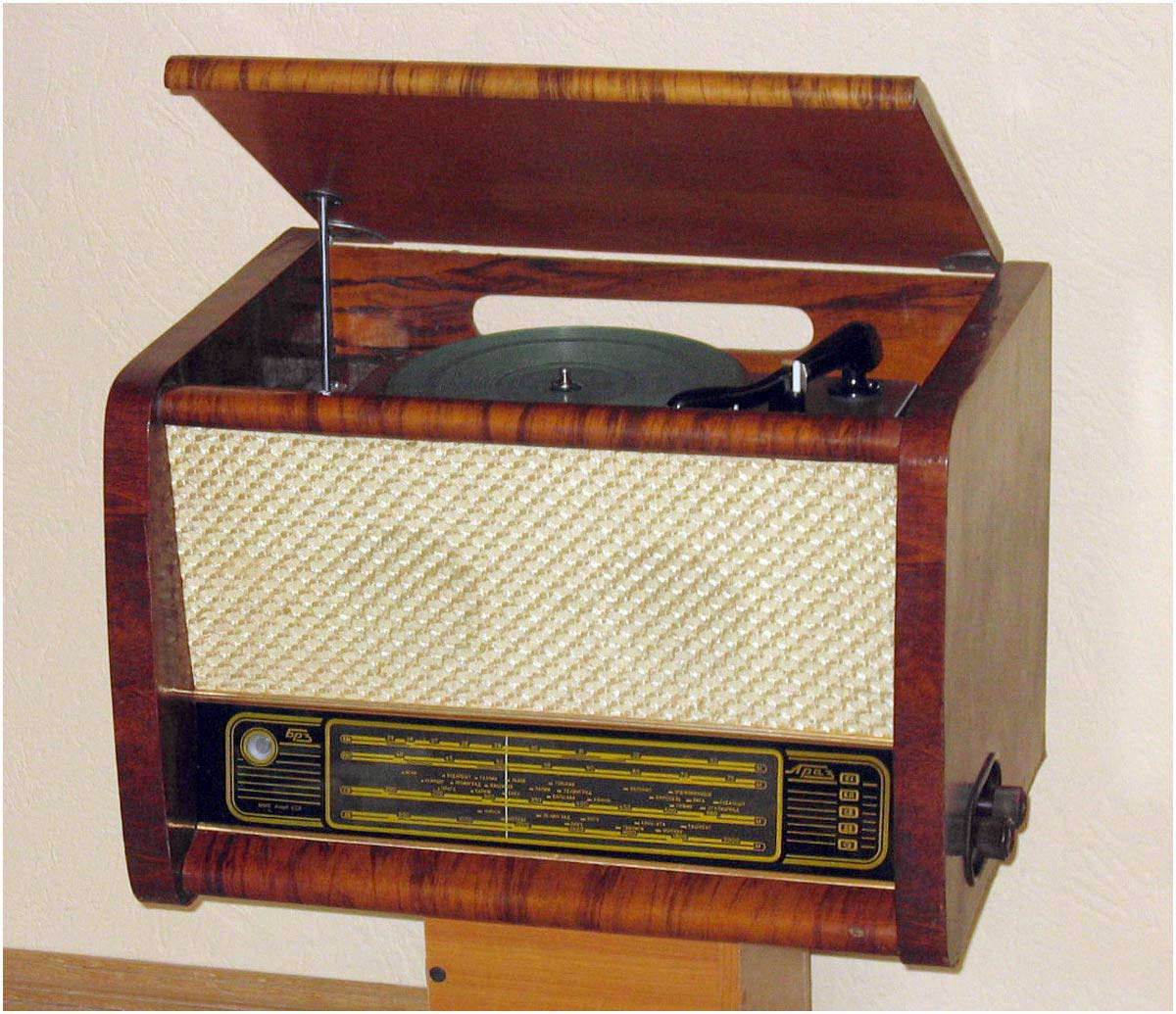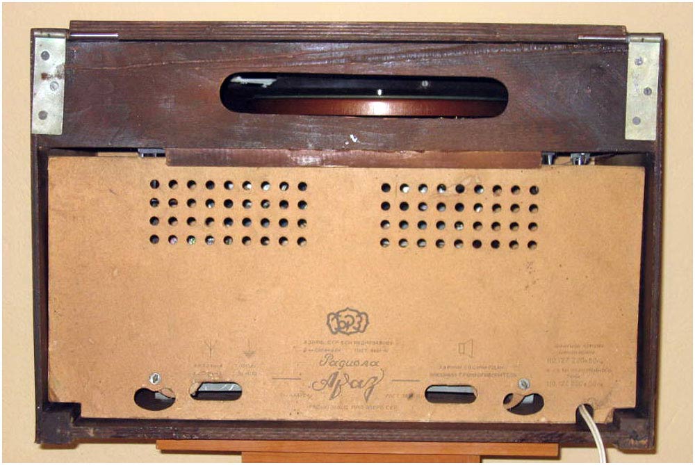 Радиолы сетевые ламповые *Араз* и *Араз-М* с 1953 и 1956 года выпускал Бакинский радиозавод. **Араз** в переводе с азербайджанского на русский - река Аракс. Радиола состоит из 6-ти лампового; 6А7, 6Б8С, 6Н9С, 6П6С, 6Е5С и 6Ц5С радиоприёмника и двухскоростного ЭПУ, с асинхронным двигателем и пьезоэлектрическим звукоснимателем с корундовыми иглами. Диапазоны: ДВ и СВ стандартные, КВ1 3,95...8,15 мГц и КВ2 9,99...12,2 мГц. Чувствительность на ДВ, СВ 200, на КВ 300 мкВ. Селективность 26 дБ. ПЧ 465 кГц. Диапазон звуковых частот при проигрывании грамзаписи 200...7000 Гц, при приёме радиостанций 200...3500 Гц. Номинальная выходная мощность на громкоговорителях 1ГД-6 1,5 Вт. Потребляемая мощность 50 Вт при работе ЭПУ и 35 Вт при радиоприёме. Слева, сбоку футляра находятся регуляторы тембра и громкости, справа настройки, переключатель диапазонов и режима проигрывания грампластинок. В 1956 году модель модернизирована в радиолу **Араз-М**. При другом оформлении её электрическая схема и конструкция почти не изменились. На базе радиолы *Араз* образца 1953 года выпуска для расширения ассортимента продукции был создан приёмник *Баку-55*, по оформлению схожий с радиолой *Араз*.