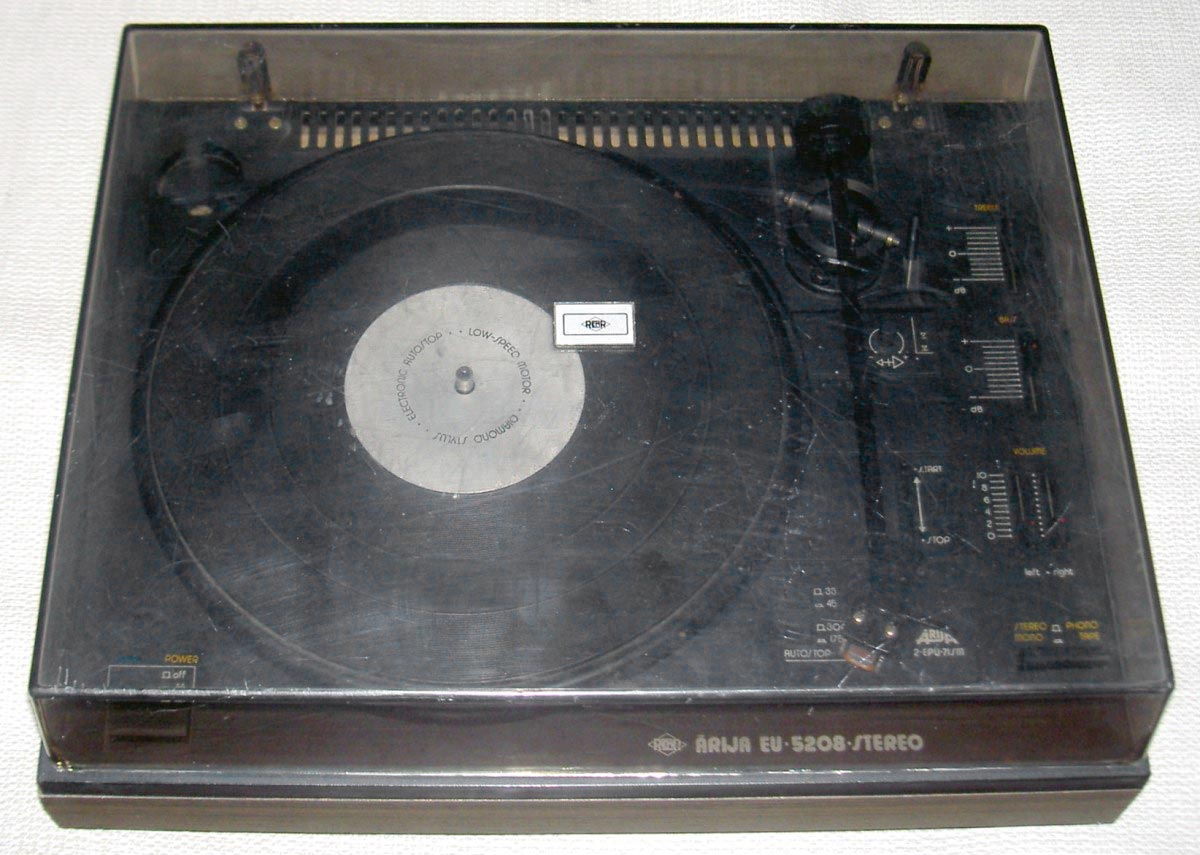 Электрофон сетевой транзисторный *Ария ЭФ-5208-стерео* с начала 1994 года выпускал Рижский электромеханический завод. Электрофон второй группы сложности **Arija-ЭФ-5208-стерео** предназначен для воспроизведения механической звукозаписи с грампластинок на скорости вращения диска 33 и 45 об/мин. В электрофоне применено электропроигрывающее устройство 2-ЭПУ-71СМ с магнитной головкой ГЗМ-105М или ГЗМ-255 по лицензии фирмы **Ортофон** с алмазной иглой и две АС типа S-30A. Диапазон воспроизводимых звуковых частот 80...16000 Гц. Коэффициент детонации 0,2 дБ. Отношение сигнал/рокот и сигнал/фон - 55/42 дБ. Потребляемая от сети мощность - 50 Вт. Номинальная выходная мощность 2х6 Вт, максимальная 10 Вт. Масса электрофона и двух АС без упаковки - 19 кг. Размер электрофона - 431х337х165 мм, одной АС - 365х215х201 мм.