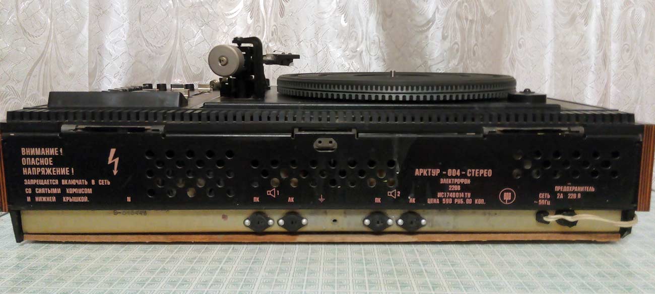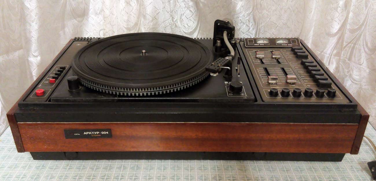 Стереофонический транзисторный электрофон *Арктур-004-стерео* с 1981 года выпускал Бердский радиозавод. ЭФ предназначен для прослушивания записи с моно и стереофонических грампластинок и состоит из 2-х скоростного ЭПУ производства ПНР, УНЧ и 2-х АС 25АС-309. Есть регулировка тембра НЧ и ВЧ, баланса, фильтры нижних, средних и верхних частот, электронная защита от КЗ в нагрузке, контроль уровня сигнала стрелочными индикаторами. В ЭПУ имеется компенсатор скатывающей силы, регулировка частоты вращения диска, автостоп и микролифт. ЭФ работает и как усилитель. Частота вращения диска 33,1/3 и 45,11 об/мин. Коэффициент детонации 0,1%. Номинальная выходная мощность 2х25 Вт. Диапазон частот по звуковому давлению 40...20000 Гц. Уровень фона -50 дБ. Коэффициент гармоник 0,2%. Потребляемая мощность 150 Вт. Габариты ЭФ 610х390х250 мм. Одной АС 480х285х261 мм. Масса ЭФ 22 кг. АС 13 кг.