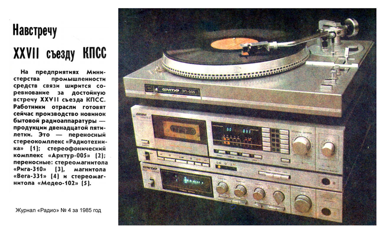 Стереофонический комплекс *Арктур-005-стерео* разработан в 1984 году Бердским радиозаводом. По ряду причин комплекс в серию не пошёл, а позднее выпускались только некоторые компоненты комплекса. С 1987 года завод планировал начать выпуск музыкального центра *Арктур МЦ-005-стерео*, но он в серию также не пошёл. На сайте описаны магнитофоны приставки *Арктур МП-005-стерео* и *Арктур МП-105-стерео*.