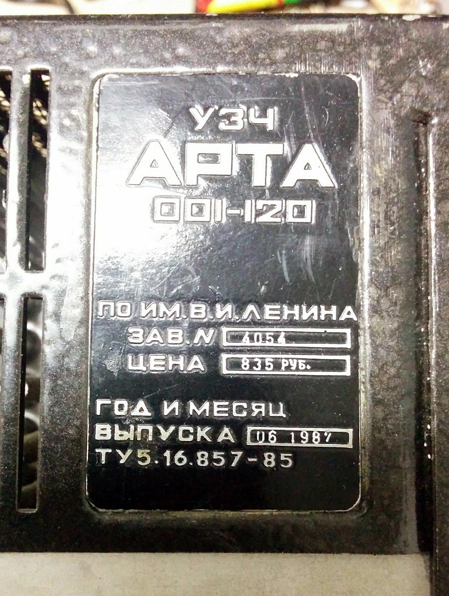 Эстрадный усилитель *Арта-001-120* выпускался предположительно с 1987 года на заводе имени Ленина в гор. Бельцы. Молдавия.