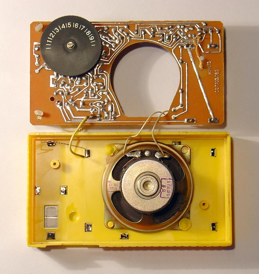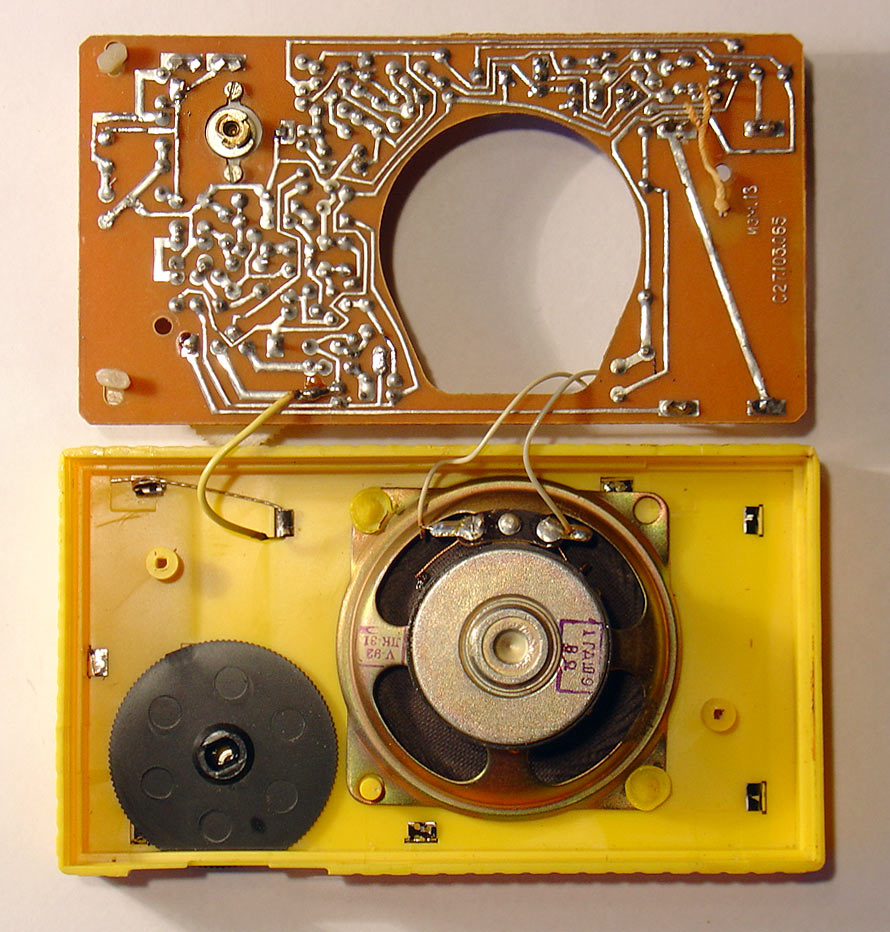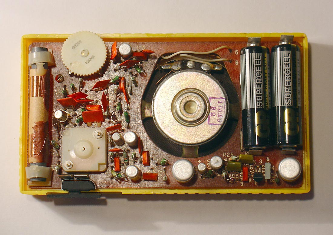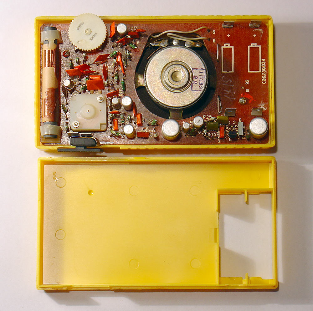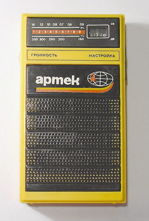 Детский радиоприёмник игрушка *Артек* с 1987 года выпускал Севастопольский приборостроительный завод им. Ленина. **Артек** является одним из первых отечественных приёмников прямого усиления с низковольтным питанием. Он собран на 12 кремниевых транзисторах и предназначен для приобретения детьми школьного возраста навыков в обращении с радиоаппаратурой. У приёмника две шкалы, первая горизонтальная, обозначенная в УЕ и в КГц для каждого диапазона является иммитатором, вторая круглая, справа в окошке, обозначенная только в условных единицах - рабочая. Питается приёмник от двух элементов 316. Громкоговоритель 1ГДШ-9. Розничная цена приёмника с батареями - 11 рублей. Диапазоны принимаемых частот: ДВ 150...300 кГц, СВ 525...1607 кГц. Чувствительность на ДВ - 6 мВ/м, СВ - 3мВ/м. Селективность на ДВ - 12 дБ, СВ - 10 дБ. Номинальная выходная мощность 30 мВт, максимальная 60. Диапазон воспроизводимых частот 200...5000 Гц. Габариты радиоприёмника - 76х135х28 мм. Масса с элементами питания - 320 гр.