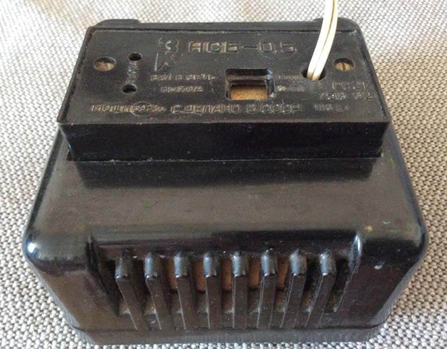 Автотрансформатор *АСБ-0,5* выпускался с 1963 года заводом *Запорожкабель* и другими предприятиями страны. Автотрансформатор *АСБ-0,5* изготавливался как в карболитовом корпусе, так и в металлическом. Предназначен для включения в электрическую сеть различных бытовых электроприборов мощностью не более 500 В*А. Необходим для понижения напряжения сети с 220 до 127 В или повышения со 127 до 220 В. Последнее фото - автотрансформаторы *АСБ-0,3* и *АСБ-0,5*.