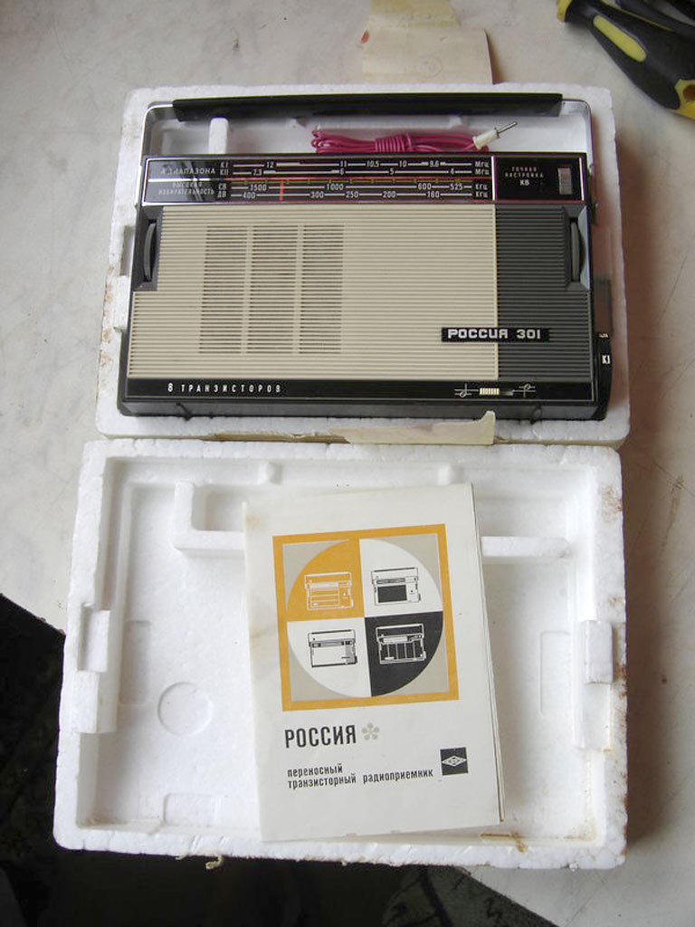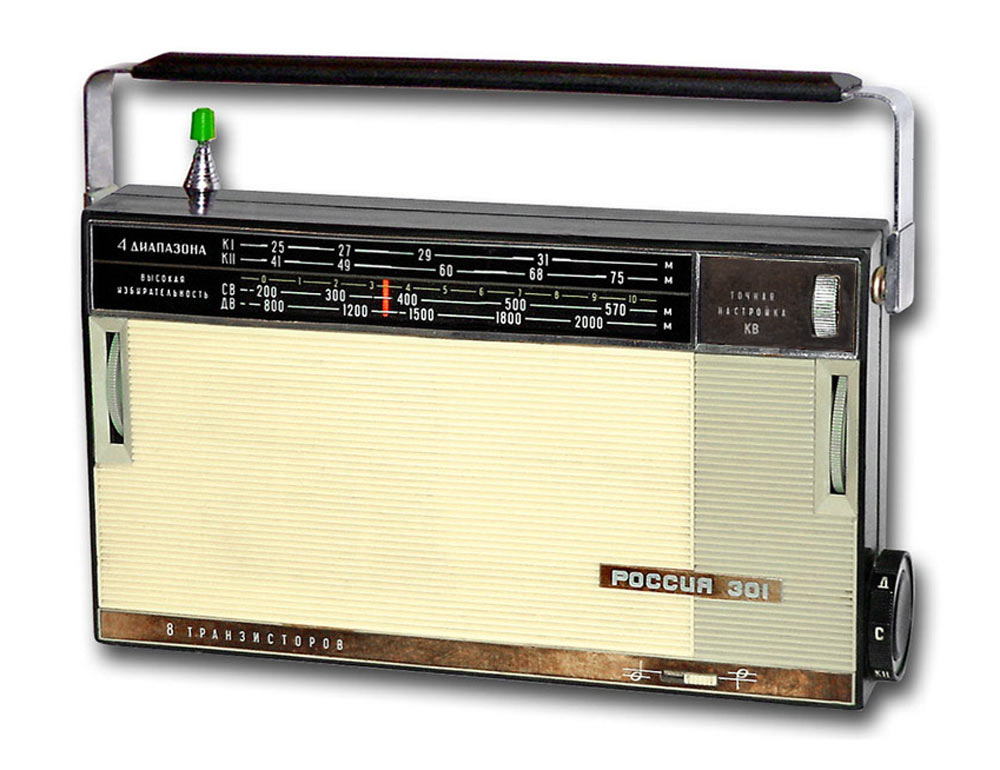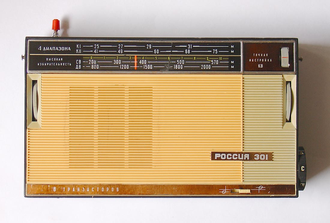 Портативный радиоприёмник *Россия* с начала 1970 года выпускал Челябинский радиозавод. С середины 1970 года радиоприёмник уже именовался как **Россия-301**, цифрами обозначая класс и номер разработки. Радиоприёмник предназначен для приёма радиостанций в диапазонах ДВ, СВ и 2-х поддиапазонах КВ. Приёмник собран на восьми транзисторах. Чувствительность в диапазонах ДВ 2,2 мВ/м, СВ 1,2 мВ/м, КВ 0,45 мВ/м. Селективность 40 дБ. Номинальная выходная мощность 100 мВт. Питание от 4-х элементов *А-316*. Габариты радиоприёмника 215х125х47 мм. Масса без батарей - 1 кг. Экспортный вариант приёмника имел наименования *Astrad* и *Astrad-Altair*.