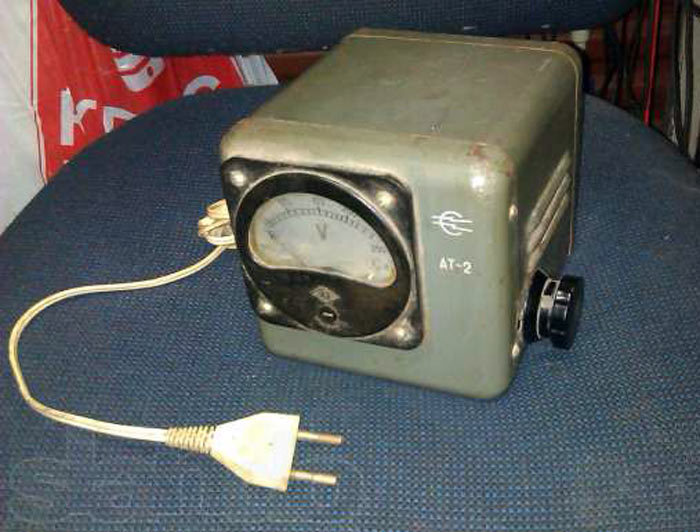 Автотрансформатор *АТ-2* предположительно с 1957 года выпускало несколько предприятий страны, в частности Харьковский и Западно-Сибирский СНХ. *АТ-2* предназначен для ручного поддержания наряжения 127 или 220 В при питании радиотелевизионной аппаратуры мощностью до 250 Вт при его изменении в сети. Автотрансформатор *АТ-2* Новосибирского завода *Электросигнал* выпускался первым и имел несколько иное оформление, затем ~ в 1960 году модернизирован.