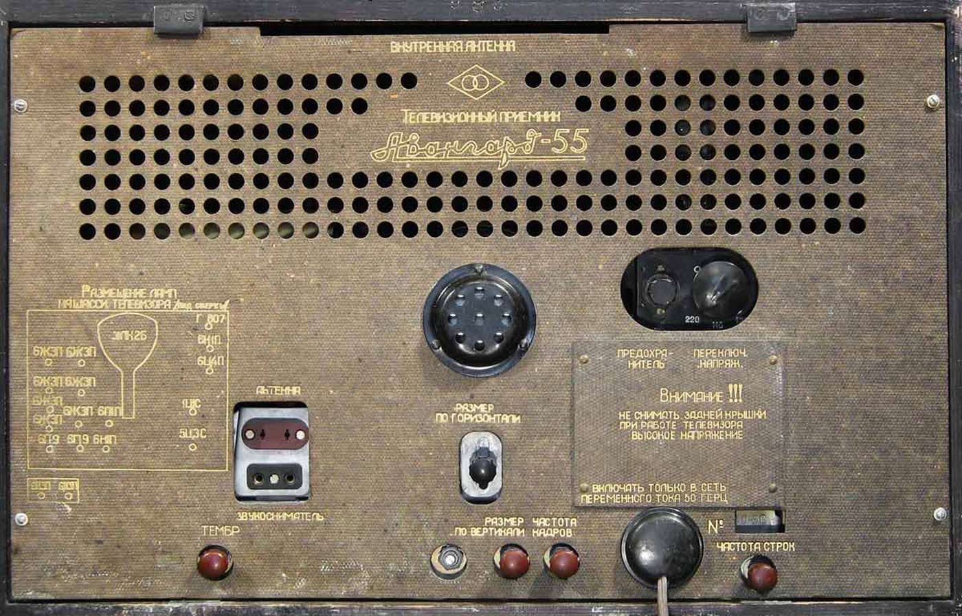 Телевизор *Авангард-55* с 1955 года выпускали Ленинградский завод им. Козицкого и Красноярский завод телевизоров. Телевизор 3 класса **Авангард-55** создан на базе модели **Авангард**. Перевод со 2 в 3 класс связан с более высокими требованиями к качеству телевизионного изображения и звукового сопровождения. Классов у телевизоров ещё официально не было, но при разработке они предусматривались хотя в инструкциях и не указывались. Телевизор предназначен для приёма в одном из 5 каналов, для приёма ЧМ станций в трёх поддиапазонах и воспроизведения грамзаписи с внешнего ЭПУ. Оформлен телевизор в деревянном полированном ящике размером 545х585х400 мм. Вес ТВ 45 кг. Питание от сети переменного тока. Потребляемая мощность при приёме ТВ 220 Вт, радио 120 Вт. Чувствительность 500 мкВ. Выходная мощность 1 Вт. Диапазон звуковых частот 100...5000 Гц. На передней панели расположена рамка окаймляющая экран, по сторонам которой под матерчатой драпировкой укреплены два громкоговорителя. Спереди под экраном расположены основные ручки управления. Справа на боковой стенке установлены две ручки, переключения программ и настройки гетеродина. Сзади на шасси стоят дополнительные регуляторы; переключатель сети, предохранитель, гнёзда для адаптера и антенны к которому через согласующее устройство подключаются внутренняя и наружная антенны. До 1957 года завод одновременно выпускал и трёхканальный телевизор *Авангард* в оформлении модели *Авангард-55*.