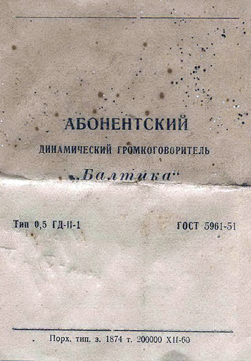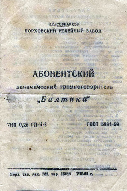 Абонентский громкоговоритель 2-го класса "Балтика" с 1954 года выпускал Ленинградский завод имени Кулакова и Порховской релейный завод в Псковской области. АГ предназначен для работы в проводной трансляционной радиосети, с напряжением только 15 или 30 вольт. Регулирование громкости в первых выпусках осуществлялось переключением отводов вторичной обмотки переходного трансформатора, позднее традиционно, потенциометром. С 1956 года внешнее оформление громкоговорителя было изменено.