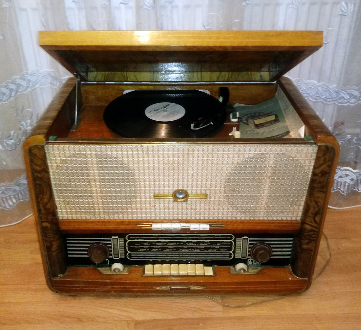 Радиола *Беларусь-59* с начала 1959 года выпускалась Минским радиозаводом. Радиола имеет 10-ти ламповый приёмник и универсальное ЭПУ. Диапазон частот: ДВ 150...415 кГц, СВ 520...1600 кГц, КВ-1 8,82...12,1 МГц, КВ-2 5,56...7,5 МГц, КВ-3 3,95...5,56 МГц, УКВ 64,5...73 МГц. ПЧ диапазона УКВ - 8,4 МГц, для остальных диапазонов 465 кГц. Чувствительность на УКВ-ЧМ 10 мкВ, для остальных диапазонов 50 мкВ. Избирательность по соседнему каналу в диапазоне УКВ-ЧМ 40 дБ, в остальных диапазонах 60 дБ. Полоса воспроизводимых звуковых частот в УКВ-ЧМ диапазоне и при работе ЭПУ - 80...12000 Гц, в АМ диапазонах 80...4000 Гц. Номинальная выходная номинальная мощность 4 Вт. Потребляемая мощность 80 Вт. АС радиолы состоит из двух широкополосных и двух ВЧ громкоговорителей. Размеры радиолы 645х440х340 мм. Масса 25 кг.