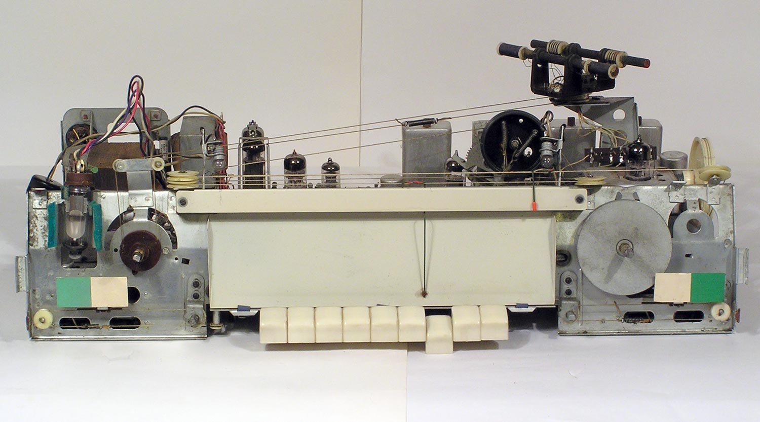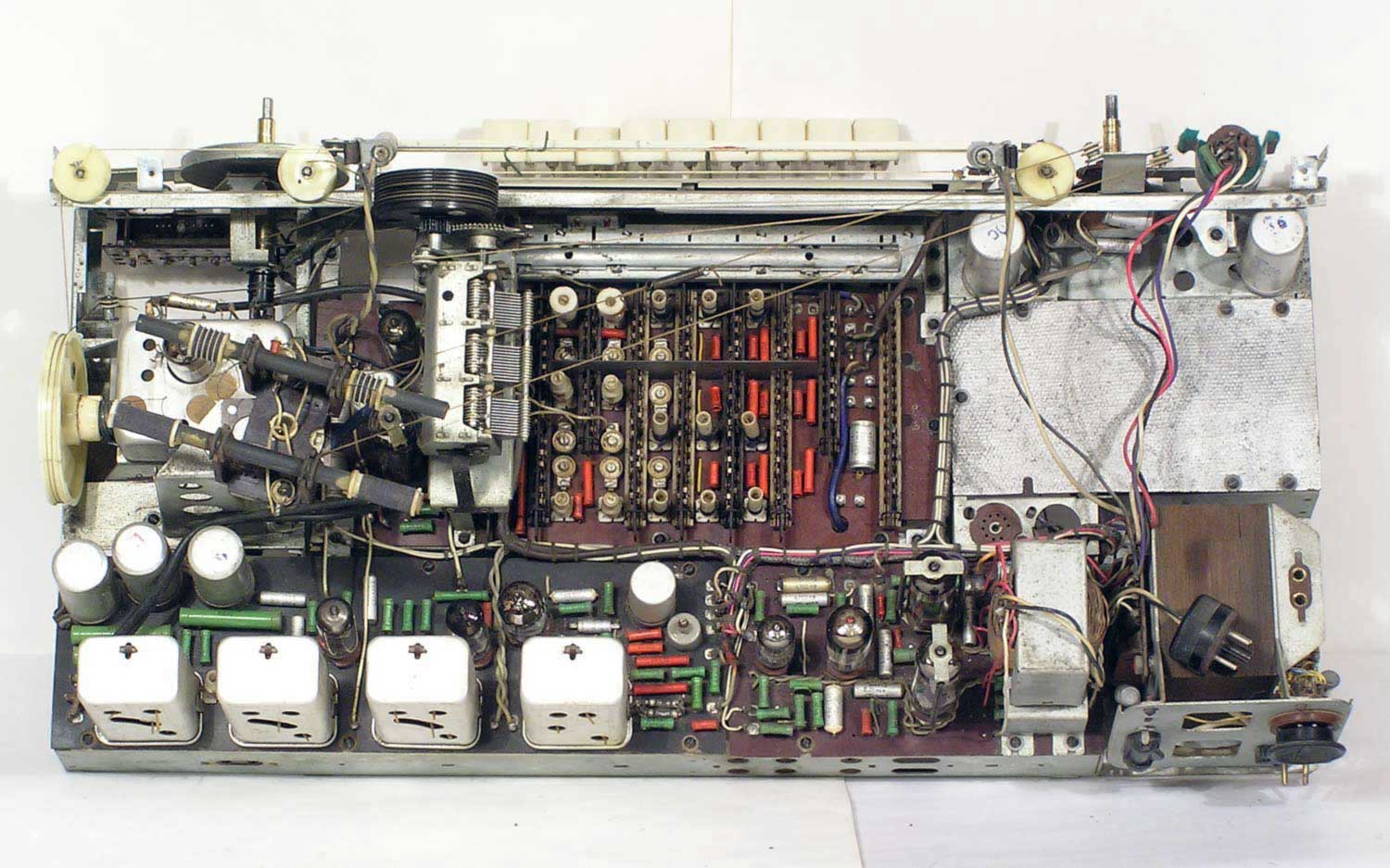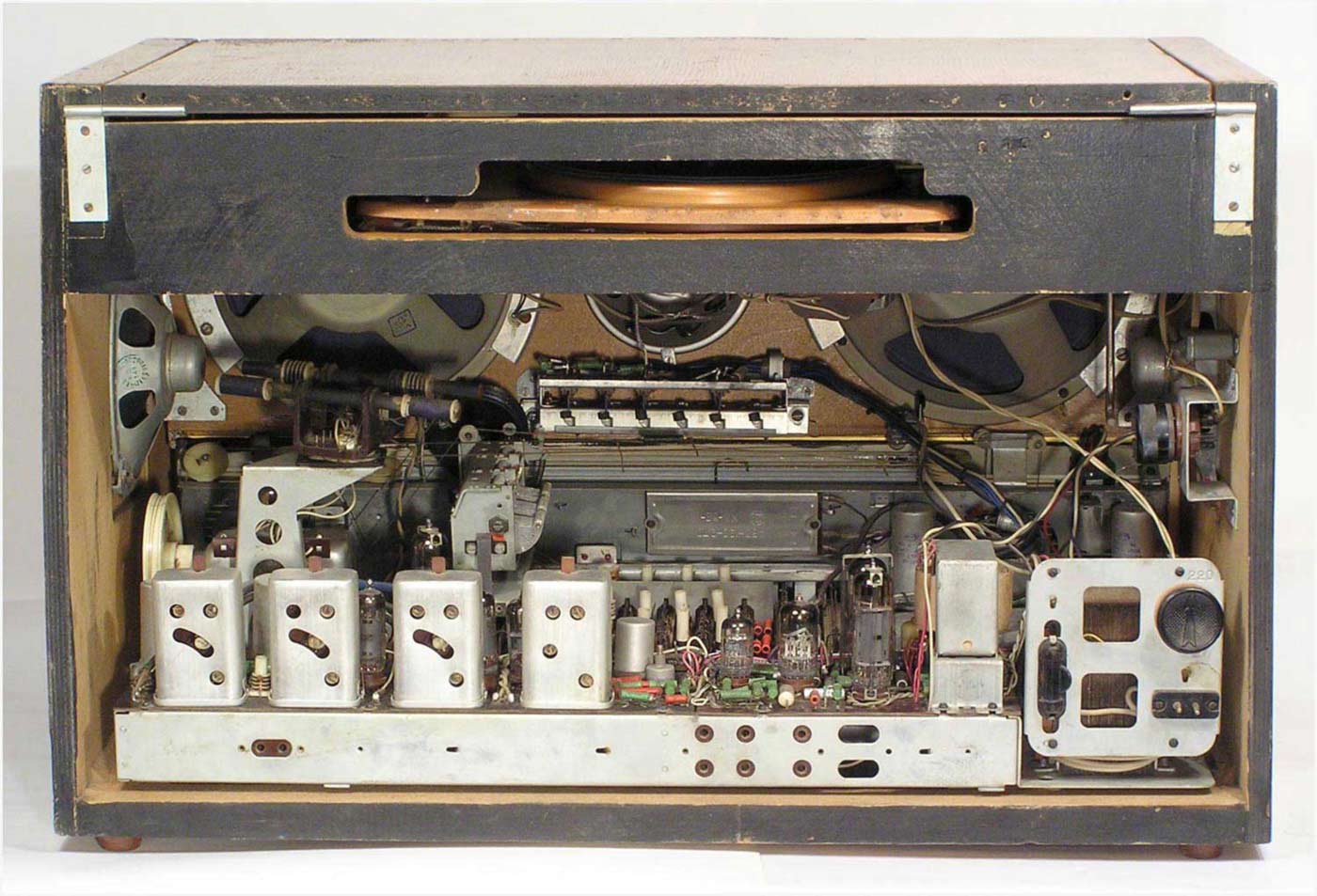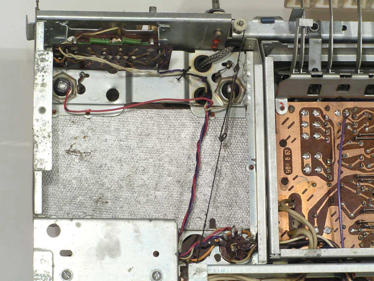 Радиола сетевая ламповая *Беларусь-62* с I-кв 1962 года выпускалась Минским радиозаводом. Радиола **Беларусь-62** состоит из одинадцатилампового приёмника 1-го класса и универсального электропроигрывающего устройства ЭПУ-4. В акустической системе радиолы установлено 5 громкоговорителей 4ГД-7 (2), 1ГД-18 (2) и 3ГД-15 (1). В диапазонах ДВ, СВ применены магнитные антенны, в диапазоне УКВ внутренний диполь. Усилитель НЧ двухтактный с регуляторами тембра, тремя тонрегистрами и тонкомпенсацией. ПЧ усилитель комбинированный, в АМ 465 кГц, ЧМ 8,4 МГц. Диапазоны ДВ 150...408 кГц, СВ 520...1605 кГц, КВ-1 11,6...12,1 мГц, КВ-2 9,3...9,8 мГц, КВ-3 4...7,6 мГц, УКВ-ЧМ 64,5...73 мГц. Чувствительность на ДВ, СВ, КВ 100 мкВ, УКВ 10 мкВ. Селективность в ДВ, СВ 60 дБ. Номинальная выходная мощность 4, максимальная 7 Вт. Полоса воспроизводимых частот в АМ тракте 80...4000 Гц, ЧМ тракте и при проигрывании пластинок 80...12000 Гц. Потребляемая мощность 75/90 Вт. Габариты модели 650х400х350 мм. Вес 24 кг.