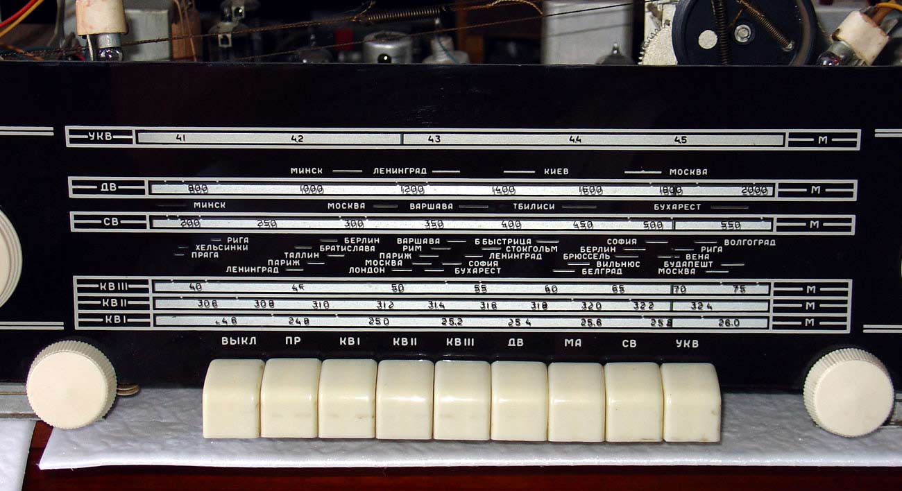 Радиола сетевая ламповая *Беларусь Р-101-Л* с 1966 года выпускалась Минским радиозаводом. Напольная ламповая радиола представляет собой 11-ти ламповый супергетеродинный радиоприёмник 1 класса с питанием от электрической сети, совмещенный с универсальным электропроигрывателем. АС радиолы состоит из четырёх громкоговорителей типа 2ГД-19. Имеется регулировка полосы пропускания по ПЧ и раздельная регулировка тембра по ВЧ и НЧ. В радиоле применены радиолампы: 6НЗП, 6К4П (3), 6И1П, 6Н2П (3), 6П14П (2), 6Е1П. Диапазоны: ДВ, СВ, УКВ стандартные. КВ-3 75,9...39,5 м, KB-2 32,3...30,6 м, KB-1 25,85...24,8 м. Чувствительность на диапазонах ДВ, СВ, KB 100 мкВ, УКВ 10 мкВ. Чувствительность с гнёзд звукоснимателя 0,25 В. Избирательность по соседнему каналу в диапазонах ДВ, СВ 60 дБ, УКВ 34 дБ. Максимальная выходная мощность 6 Вт. Потребляемая мощность 100 Вт. Полоса воспроизводимых звуковых частот в УКВ диапазоне 80...12000 Гц. Габариты радиолы - 810 х 380 х 270 мм. Масса 28 кг.