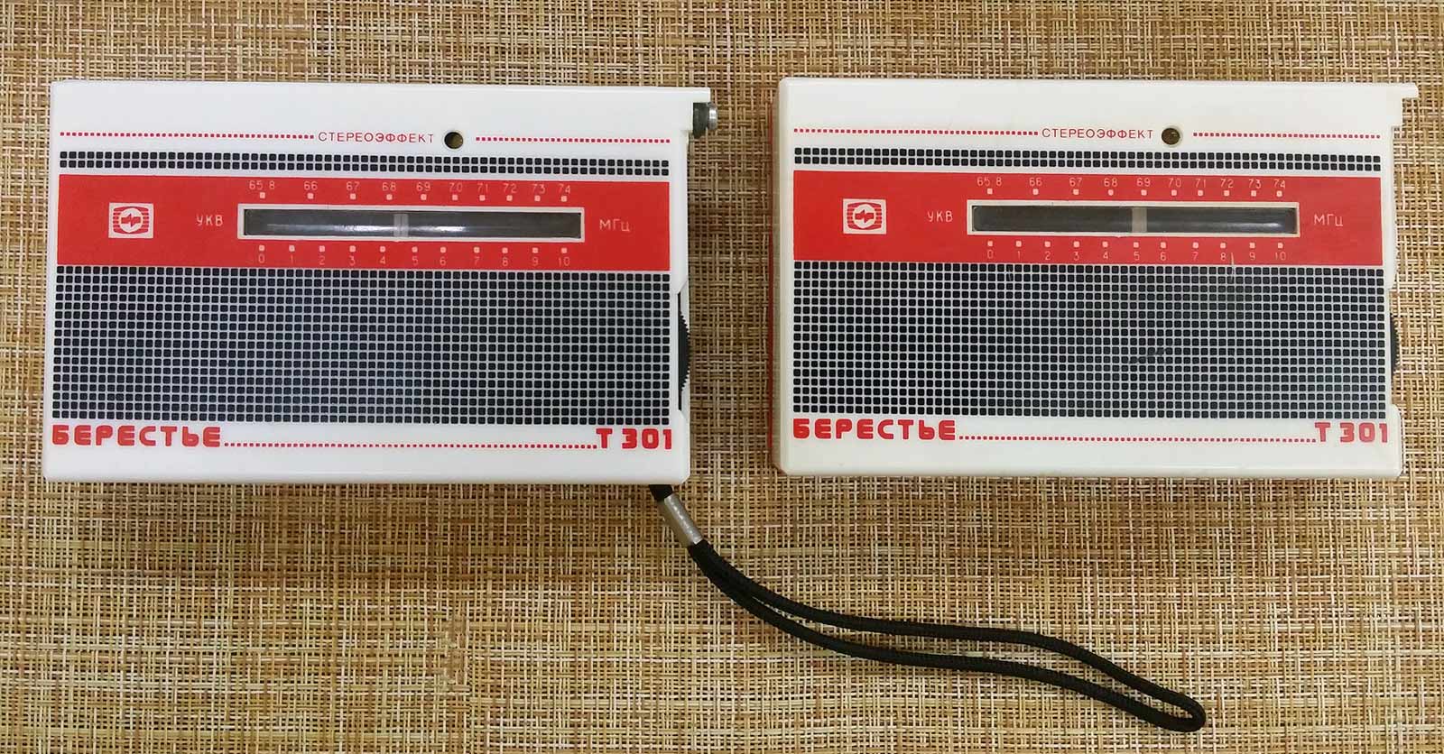 Носимый стереофонический тюнер *Берестье Т301* выпущен ограниченной партией в 1993 году Брестским радиотехническим заводом. Тюнер предназначен для приёма программ радиовещательных станций УКВ диапазона (в том числе стереофонических) от 65,8 МГц до 74 МГц и воспроизведения их через стереофонические телефоны. Питание от 4-х элементов питания А-316 или от внешнего источника питания постоянного тока напряжением от 4,2 до 6,6 В, с током не менее 0,2 А. Максимальная выходная мощность на нагрузке в 8 Ом - 250 мВт. Максимальная выходная мощность на нагрузке 100 Ом - 25 мВт. Габариты тюнера 150 х 90 х 38 мм. Масса без батарей 200 гр. Тюнер редкий. Всего было выпущено около 1 тысячи экземпляров.