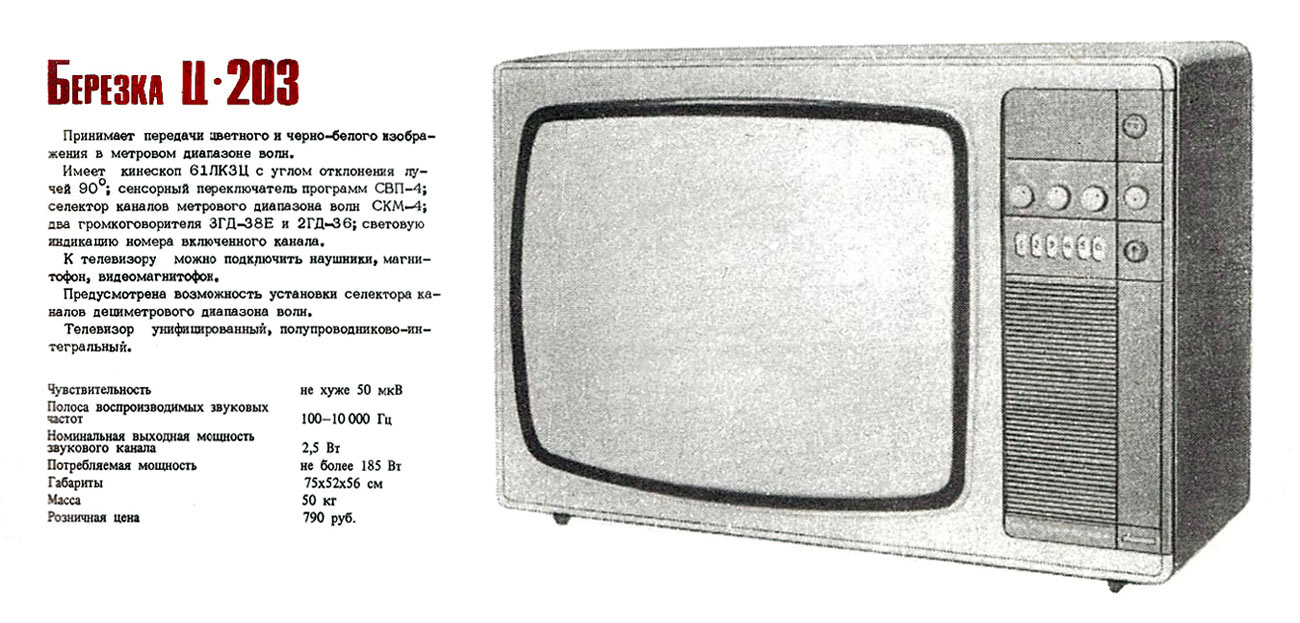 Телевизионный приёмник цветного изображения *Берёзка Ц-203* подготовило к выпуску с 1985 года Харьковское ПО *Коммунар*.