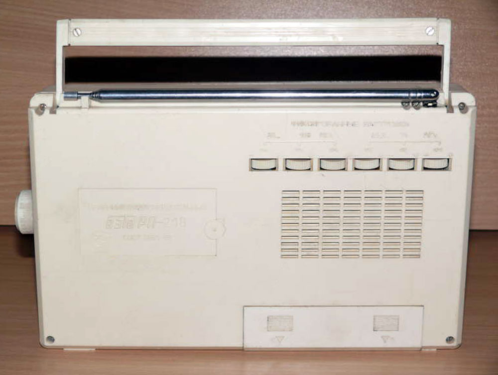 Портативный УКВ радиоприёмник *БЭТО РП-218* с 1995 года выпускал Уфимский завод коммутационной аппаратуры. БЭТО - Башкирское ЭлектроТехническое Объединение. Приёмник принимает радиовещательные станции в УКВ диапазонах 65,8...74 и 87,5...108 МГц. Приём осуществляется с плавной настройкой или на выбранные ручками фиксированных настроек частоты, по три на каждый диапазон. Переключение этих настроек осуществляется соответствующей кнопкой переключателя, с индикацией светодиодом. Приём осуществляется на штыревую телескопическую или внешнюю антенну. Питание осуществляется от шести элементов типа А343 или от электрической сети переменного тока через выносной блок питания. Чувствительность приёмника на любом диапазоне 30...50 мкВ. Полоса воспроизводимых звуковых частот 125...10000 Гц. Максимальная выходная мощность 2 Вт. Имеется регуляторы тембров ао НЧ и ВЧ частотам, система БШН и АПЧ, гнездо для головных стереофонических телефонов, работающих здесь в режиме моно. Габариты приёмника - 262х161х53 мм. Вес 1 кг.