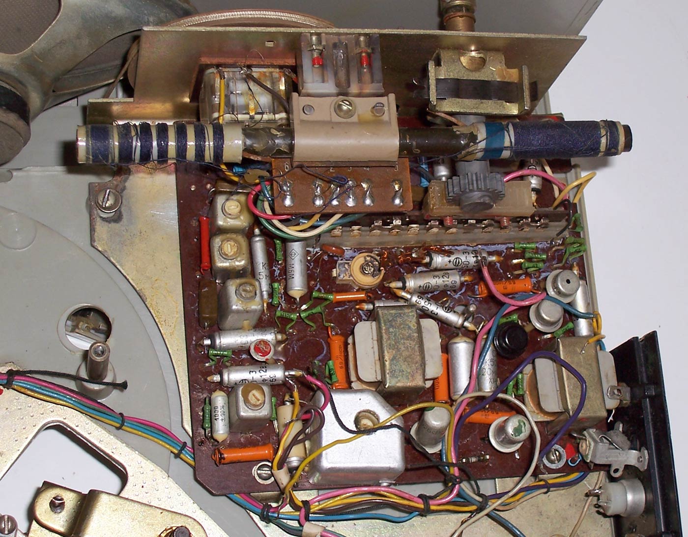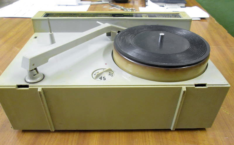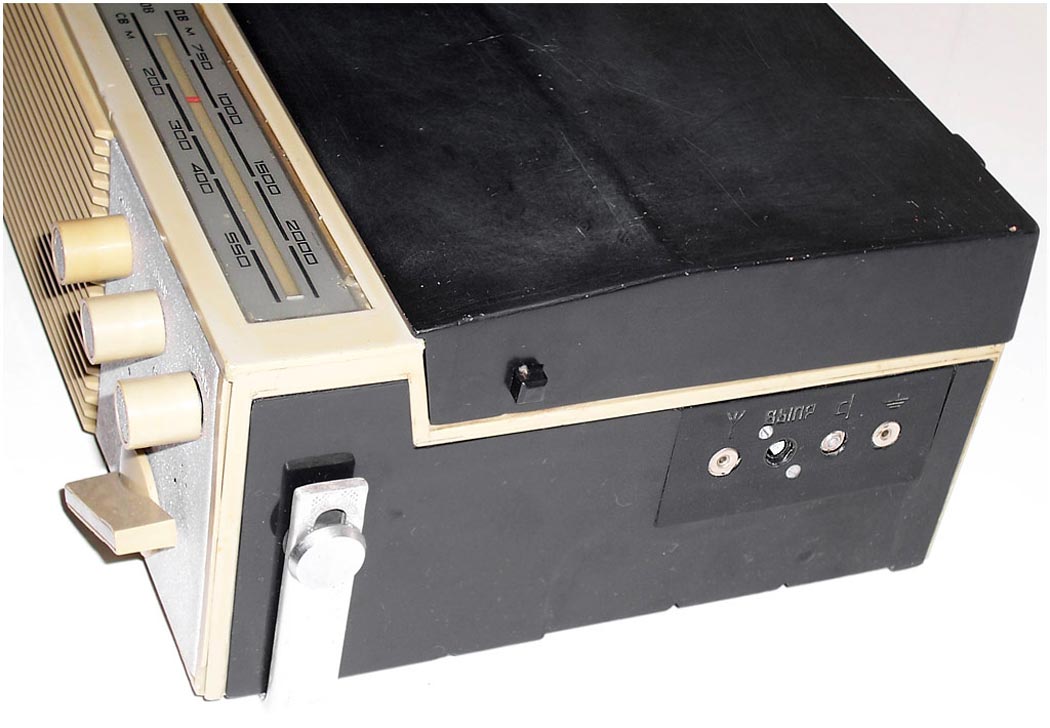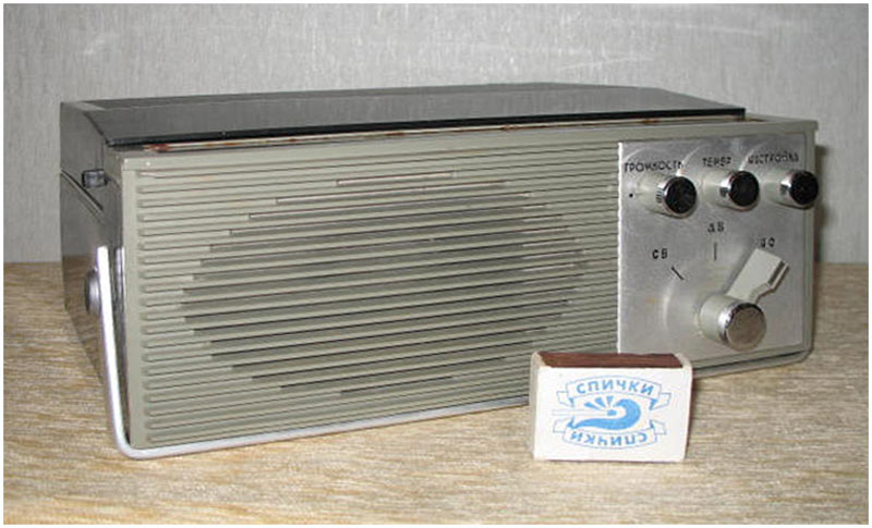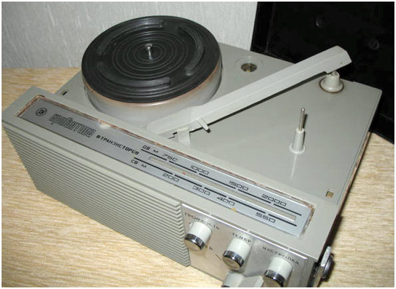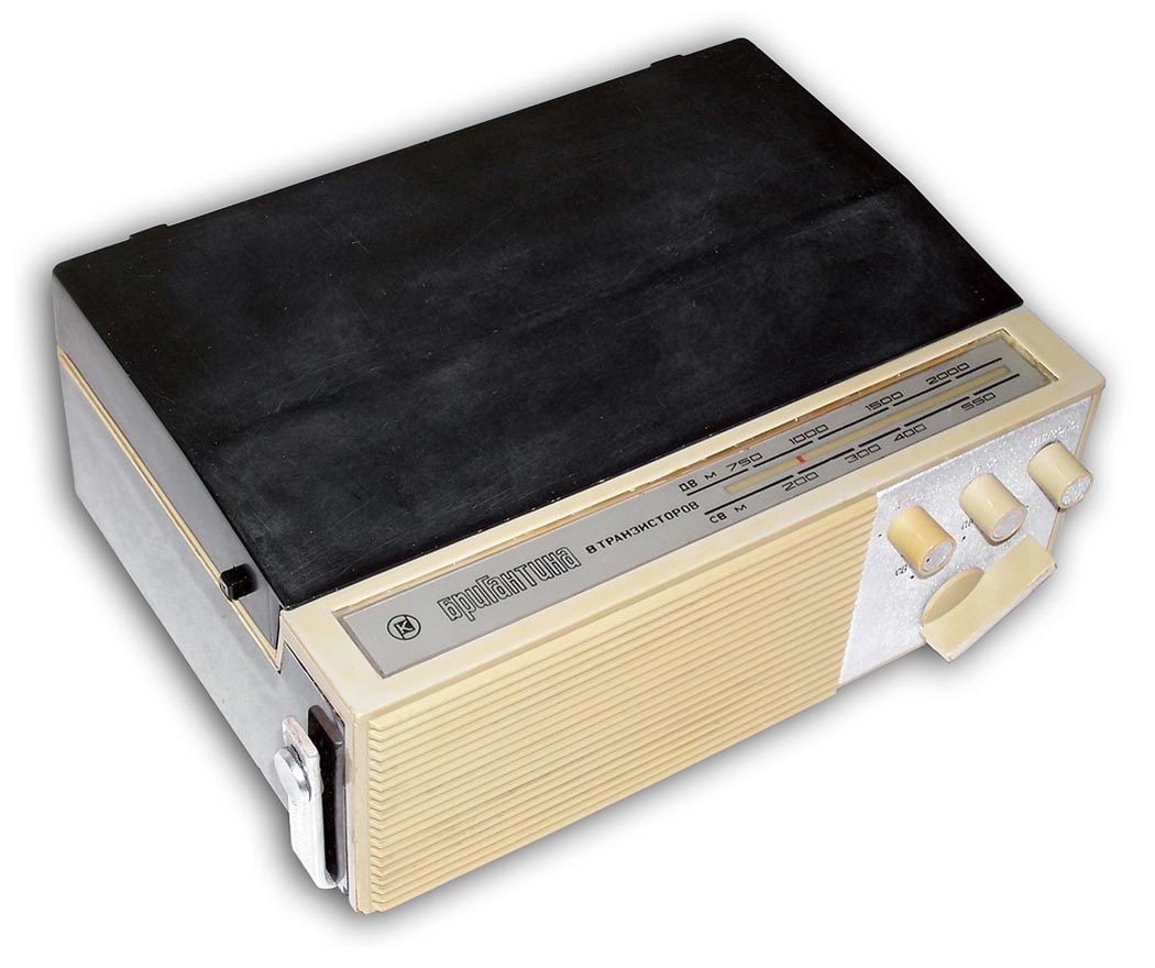 Портативная радиола *Бригантина* с 1969 года выпускалась Кыштымский радиозаводом. Радиола **Бригантина** - одна из немногих портативных транзисторных радиол выпущенных отечественной радиопромышленностью. Радиола предназначена для приёма радиовещательных станций в диапазонах длинных и средних волн на внутреннюю магнитную антенну и воспроизведения грампластинок на трёхскоростном ЭПУ. Радиола работает в автономном режиме от 6-ти батарей типа 373 и в стационарном, питаясь от сетевого выпрямителя. В 1970 году электрическая схема радиолы была модернизирована и в справочнике описан именно этот вариант. Чувствительность радиоприёмника радиолы в длинноволновом диапазоне не хуже 2,5 мВ/м, в средневолновом не хуже 1,5 мВ/м. Акустическая система радиолы состоит из одного громкоговорителя 1ГД-28. Полоса воспроизводимых звуковых частот при радиоприёме - 200...3500 Гц, а при воспроизведении грамзаписи - 200...7000 Гц. Номинальная выходная мощность усилителя - 0,5 Вт. Время работы радиолы от свежего комплекта батарей при ежедневном двухчасовом радиоприёме около 100 дней, при проигрывании грампластинок около 20 дней. В радиоле имеются гнёзда для подключения источника внешнего питания и головных телефонов. Габариты радиолы 310 х 230 х 122 мм, масса с батареями питания - 4,1 кг.