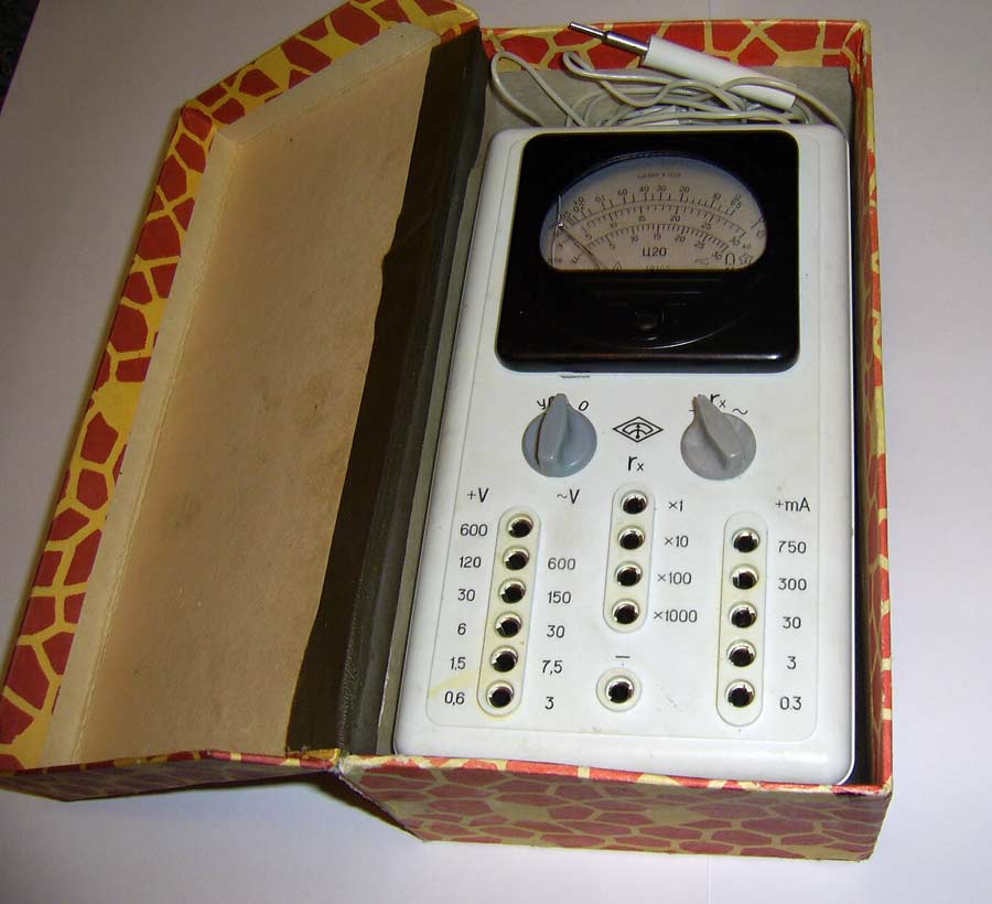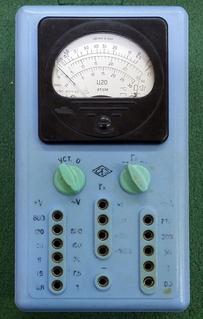 Ампервольтомметр *Ц-20* с начала 1955 года выпускал Омский завод *Электроточприбор*. Комбинированный прибор **Ц-20** предназначен для измерения величины постоянного и переменного напряжений, силы тока и сопротивлений. За более чем 30-ти летнее производство, прибор не претерпел существенных изменений за исключением замены его элементной базы на более современную, да чёрного футляра из карболита на пластмассовый с закруглёнными или острыми углами, в основном светлых оттенков. Выпускали прибор и другие заводы, отличавшиеся регуляторами управления, медными, никелированными или лужёными гнёздами. Цена прибора была постоянной 19 рублей. Исключением стал авометр *Ц-20* 1976 года выпуска, в наборе с паяльником, добавочными устройствами и припоем.