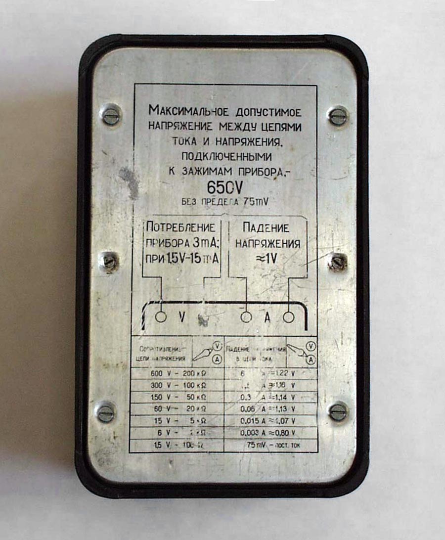 Вольтамперметр *Ц-312* с I-кв 1955 года выпускал Краснодарский завод измерительных приборов. Вольтамперметр **Ц-312** предназначен для измерения постояного и переменного напряжения и силы тока. Для каждого рода измерений в приборе имеется 6 пределов, которые переключаются отдельными позиционными движковыми переключателями. Переключение на измерение напряжения или тока, а также рода тока производится отдельно. Сзади вольтамперметра находится таблица данных.