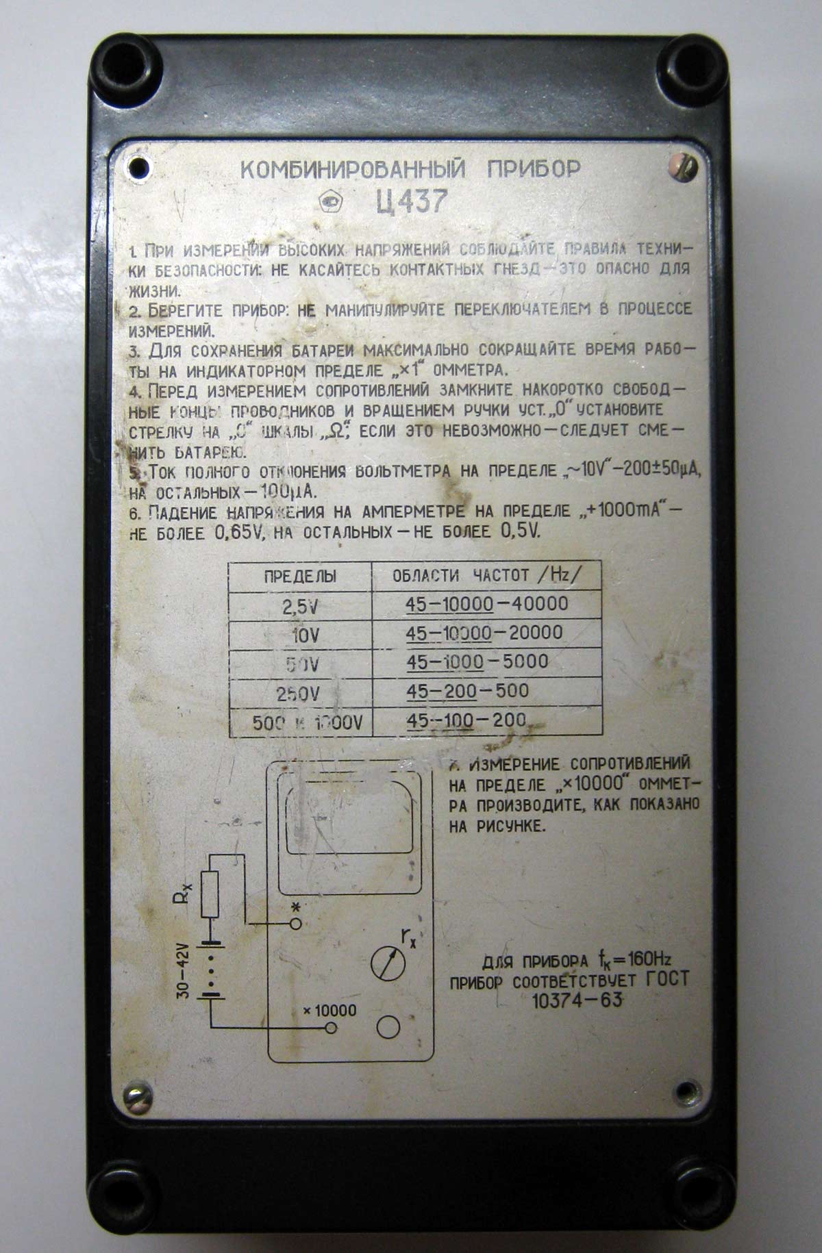 Ампервольтомметр *Ц-437* выпускался с 1964 года. Ампервольтомметр является комбинированным прибором, предназначенным для измерения тока и напряжения в цепях постоянного тока, сопротивления постоянному току, эффективного действующего значения напряжения синусоидальной формы в цепях переменного тока частотой от 45 до 40000 Гц. Прибор предназначен для использования при эксплуатации радиотехнической аппаратуры и средств связи, а также радиолюбителями.
